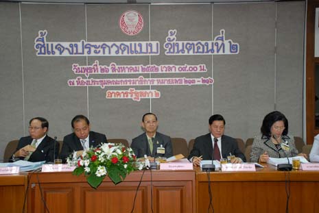 | วันพุธที่ ๒๖ สิงหาคม ๒๕๕๒ เวลา ๐๙.๐๐ นาฬิกา ณ ห้องประชุมคณะกรรมาธิการหมายเลข ๒๑๓-๒๑๖ ชั้น ๒ อาคารรัฐสภา ๒ นายประสพสุข บุญเดช ประธานวุฒิสภา ในฐานะประธานกรรมการตัดสินการประกวดแบบอาคารรัฐสภาแห่งใหม่พร้อมอาคารประกอบ เป็นประธานในการประชุมชี้แจงรายละเอียดการประกวดแบบขั้นตอนที่ ๒ โดยมีผู้ชนะการประกวดแนวความคิดในขั้นตอนที่ ๑ รอบสอง จำนวน ๕ ราย |