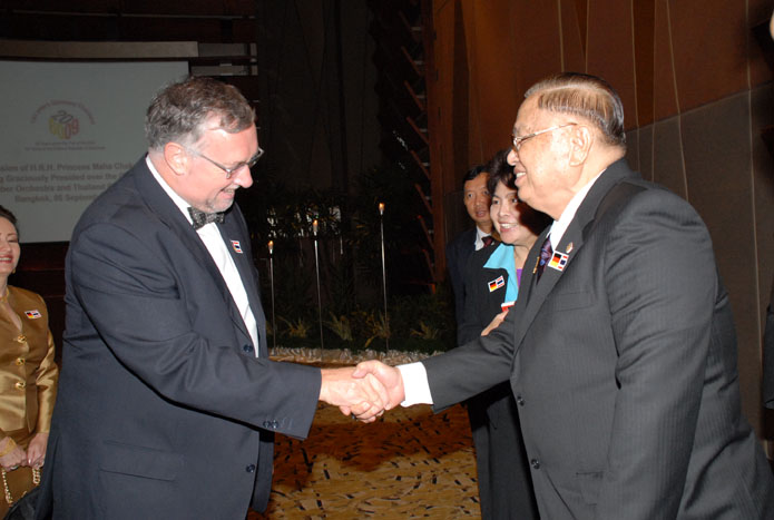 วันอาทิตย์ที่ ๖ กันยายน ๒๕๕๒ เวลา ๑๘.๑๕ นาฬิกา ณ ห้องบอลรูม โรงแรมมิลเลเนียม ฮิลตัน กรุงเทพฯ นายชัย ชิดชอบ ประธานรัฐสภา และประธานสภาผู้แทนราษฎร เข้าร่วมงานเลี้ยงรับรองและชมคอนเสิร์ตครบรอบ ๑๕๐ ปี ความสัมพันธ์ไทย-สหพันธ์สาธารณรัฐเยอรมนี |