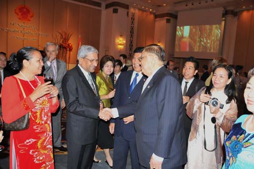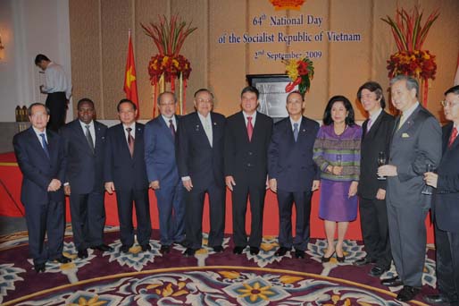 วันพุธที่ ๒ กันยายน ๒๕๕๒ เวลา ๑๘.๓๐ นาฬิกา ณ ห้องแกรนด์ฮอล ชั้น ๒ โรงแรมพลาซ่า แอทธินี กรุงเทพฯ นายชัย ชิดชอบ ประธานรัฐสภา และประธานสภาผู้แทนราษฎร พร้อมด้วยนายสามารถ แก้วมีชัย รองประธานสภาผู้แทนราษฎร คนที่หนึ่ง เข้าร่วมงานเลี้ยงรับรองในโอกาสครบรอบ ๖๔ ปี วันชาติสาธารณรัฐสังคมนิยมเวียดนาม |
