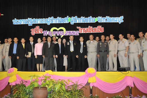 วันอาทิตย์ที่ ๑๑ ตุลาคม ๒๕๕๒ เวลา ๐๙.๐๐ นาฬิกา ณ หอประชุม จังหวัดลพบุรี นายชัย ชิดชอบ ประธานรัฐสภา และประธานสภาผู้แทนราษฎร เป็นประธานในพิธีเปิดโครงการติดตามผลการปฏิบัติและเสนอแนะแนวทางสร้างความร่วมมือให้แก่ผู้บริหารองค์กรปกครองส่วนท้องถิ่นและผู้ปกครองท้องที่ในการเสริมสร้างและเผยแพร่ประชาธิปไตยอันมีพระมหากษัตริย์ทรงเป็นประมุข |