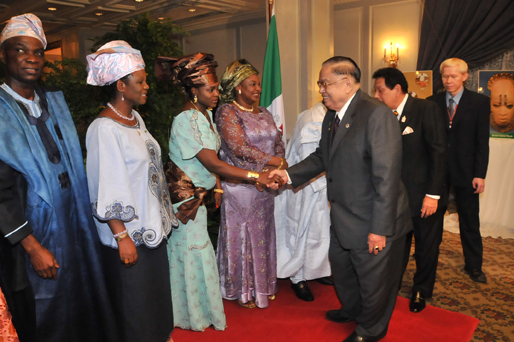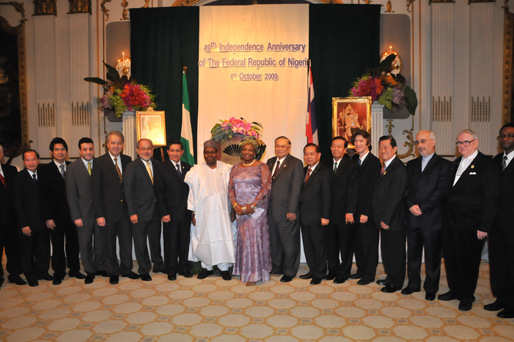 | วันพฤหัสบดีที่ ๑ ตุลาคม ๒๕๕๒ เวลา ๑๘.๓๐ นาฬิกา ณ ห้องรอยัล บอลรูม โรงแรมแมนดาริน โอเรียนเต็ล กรุงเทพฯ นายชัย ชิดชอบ ประธานรัฐสภา และประธานสภาผู้แทนราษฎร พร้อมด้วยนายสามารถ แก้วมีชัย รองประธานสภาผู้แทนราษฎร คนที่หนึ่ง และนายคัมภีร์ ดิษฐากรณ์ รองเลขาธิการสภาผู้แทนราษฎร เข้าร่วมงานเลี้ยงรับรอง เนื่องในโอกาสครบรอบ ๔๙ ปี วันชาติสหพันธ์สาธารณรัฐไนจีเรีย |