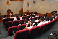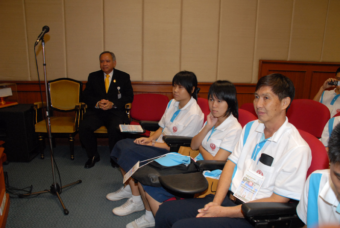 | วันพุธที่ ๑๔ ตุลาคม ๒๕๕๒ เวลา ๑๑.๐๐ นาฬิกา ณ ห้องสารนิเทศ อาคารรัฐสภา ๑ นายชัย ชิดชอบ ประธานรัฐสภา และประธานสภาผู้แทนราษฎร ให้การต้อนรับและให้โอวาสแก่ผู้เข้าร่วมโครงการทัศนศึกษาเส้นทางประชาธิปไตย กลุ่มที่ ๑ |