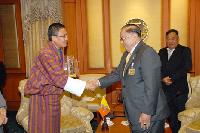 | วันจันทร์ที่ ๑๒ ตุลาคม ๒๕๕๒ เวลา ๑๑.๐๐ นาฬิกา ณ ห้องรับรอง ๒ ชั้น ๒ อาคารรัฐสภา ๑ นายชัย ชิดชอบ ประธานรัฐสภา และประธานสภาผู้แทนราษฎร ให้การรับรอง ลินโป นัมเก เพนโจ ประธานสภาที่ปรึกษาแห่งราชอาณาจักรภูฏาน ในโอกาสที่เดินทางมาศึกษาดูงานด้านรัฐสภาที่ประเทศไทยและเพื่อเป็นการเสริมสร้างสันถวไมตรีและความเชื่อมโยงระหว่างรัฐสภาของทั้งสองประเทศรวมทั้งเพื่อแลกเปลี่ยนประสบการณ์ระหว่างกัน |