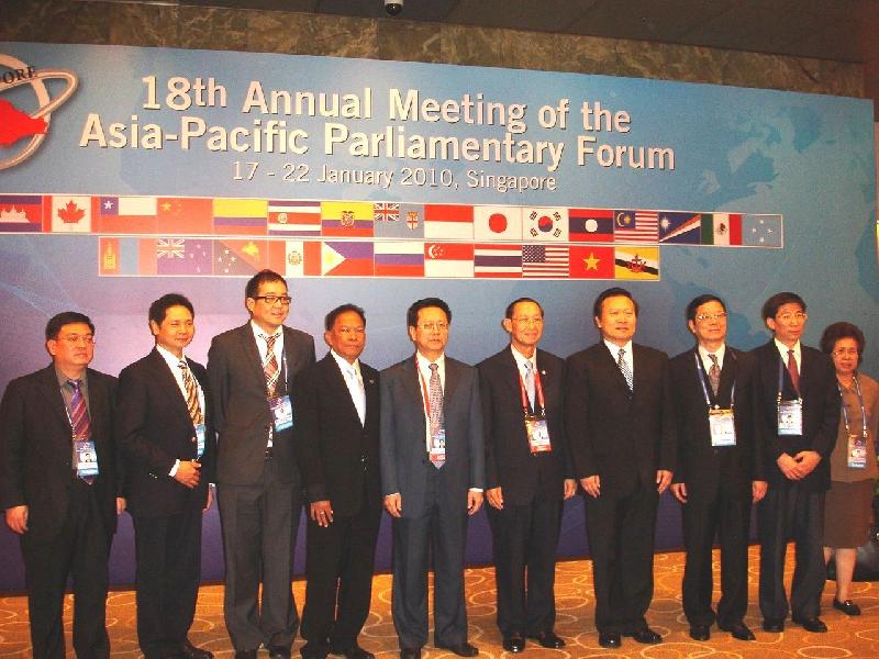 ด้วยคณะผู้แทนรัฐสภาไทยนำโดยนายประสพสุข บุญเดช ประธานวุฒิสภา และคณะผู้แทนรัฐสภาไทย ได้เดินทางไปเข้าร่วมการประชุมประจำปีรัฐสภาภาคพื้นเอเชียและแปซิฟิก (APPF) ครั้งที่ ๑๘ ระหว่างวันที่ ๑๗ - ๒๒ มกราคม ๒๕๕๓ ณ สาธารณรัฐสิงคโปร์ อ่านต่อ ...