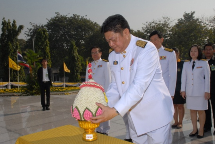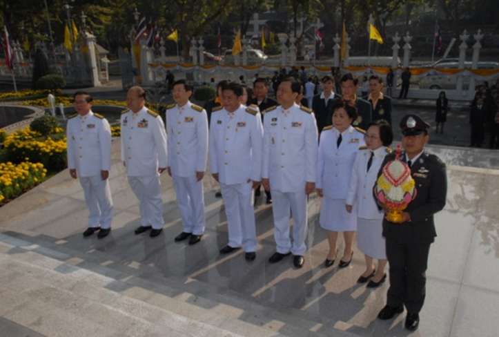 พิธีวางพานประดับพุ่มดอกไม้ถวายบังคม พระบรมราชานุสาวรีย์พระบาทสมเด็จพระปกเกล้าเจ้าอยู่หัว
