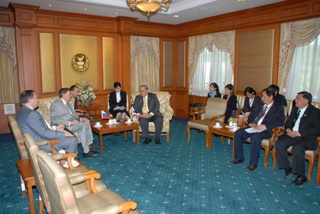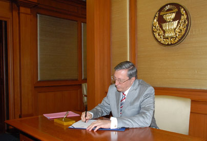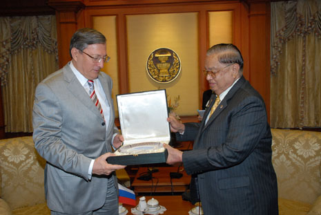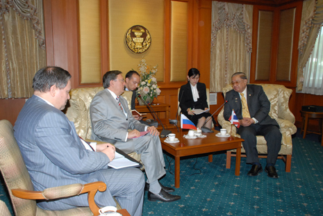 | วันจันทร์ที่ ๒๖ เมษายน ๒๕๕๓ เวลา ๑๔.๐๐ นาฬิกา ณ ห้องรับรอง ๒ ชั้น ๒ อาคารรัฐสภา ๑ นายชัย ชิดชอบ ประธานรัฐสภา และประธานสภาผู้แทนราษฎร ให้การรับรองนายอะเล็กซานเดอร์ มารียาซอฟ (H.E.Mr.Alexander Mariyasova) เอกอัครราชทูตสหพันธรัฐรัสเซียประจำประเทศไทย เพื่อแนะนำในโอกาสเข้ารับตำแหน่งเอกอัครราชทูตวิสามัญผู้มีอำนาจเต็มแห่งสหพันธ์รัฐเซียประจำประเทศไทยคนใหม่ |