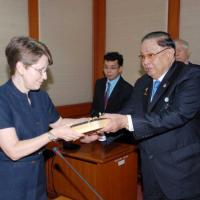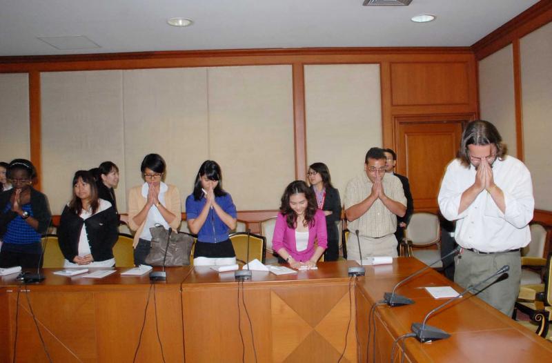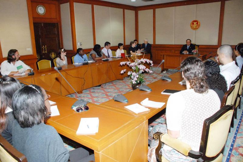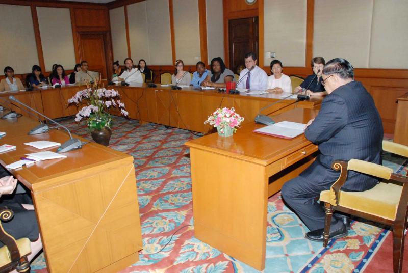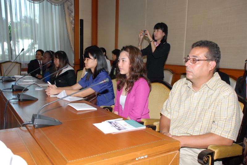 | วันศุกร์ที่ ๒๕ มิถุนายน ๒๕๕๓ เวลา ๑๐.๓๐ นาฬิกา ณ ห้องรับรอง ๑ ชั้น ๒ อาคารรัฐสภา ๑ นายชัย ชิดชอบ ประธานรัฐสภา และประธานสภาผู้แทนราษฎร ให้การต้อนรับคณะนักศึกษาชาวอเมริกันระดับปริญญาโทของมหาวิทยาลัย Webster และอาจารย์ผู้สอน จำนวน ๓๙ คน |