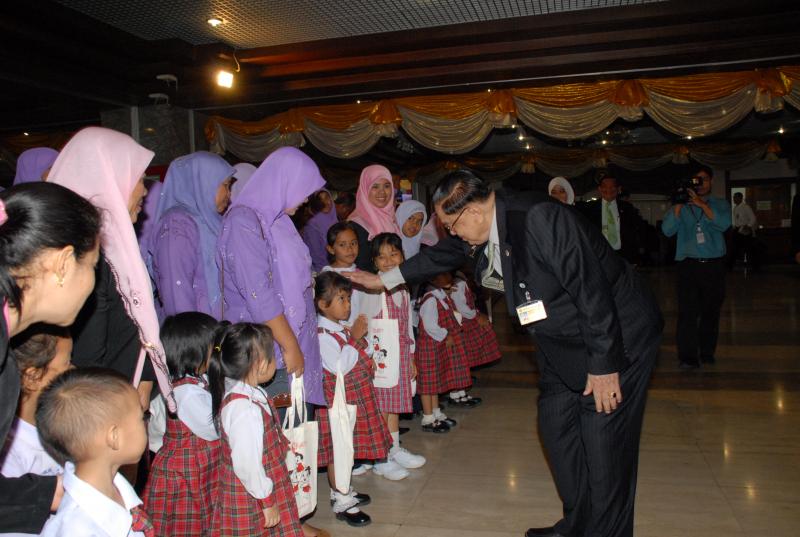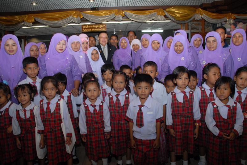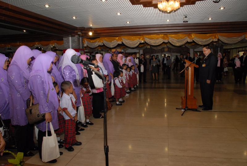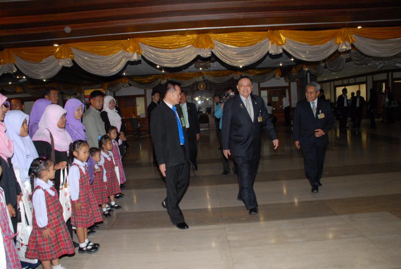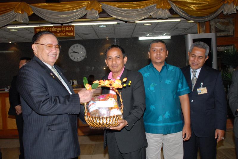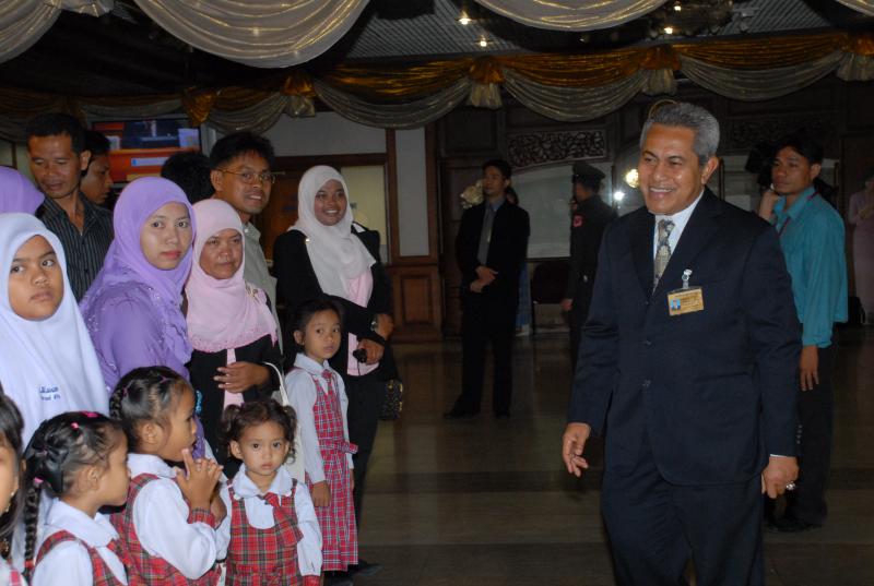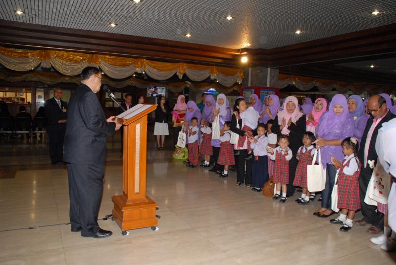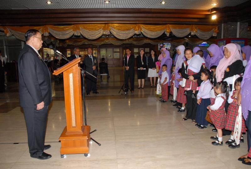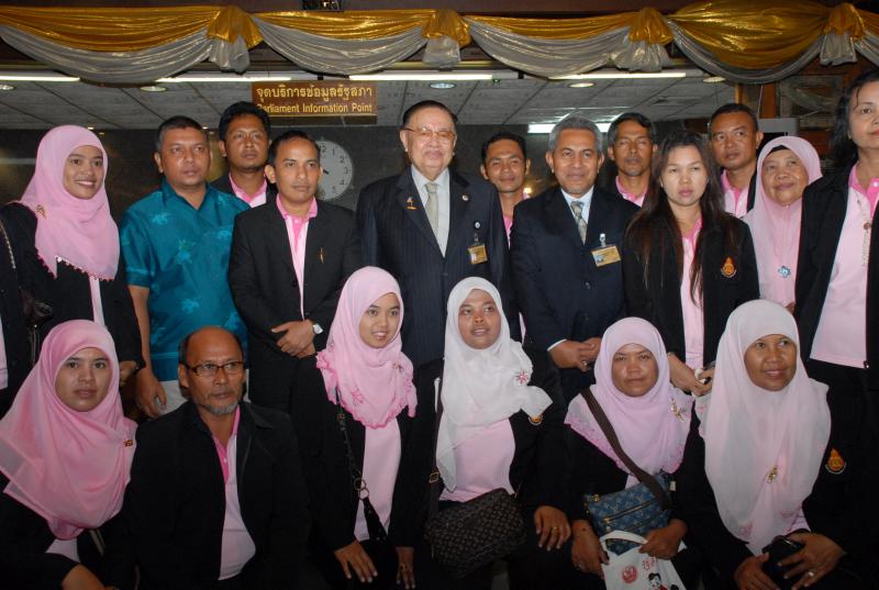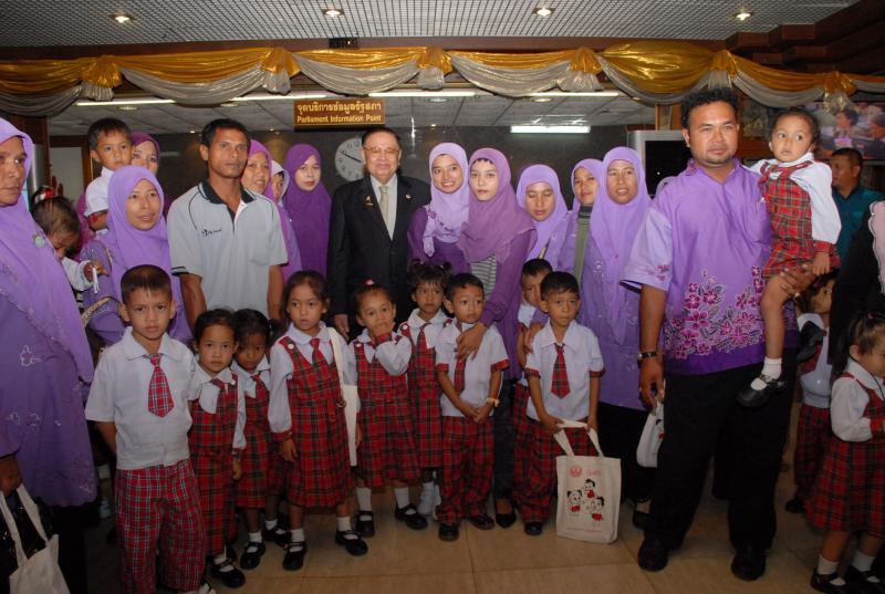 | วันพุธที่ ๒๑ กรกฎาคม ๒๕๕๓ เวลา ๐๙.๐๐ นาฬิกา นายชัย ชิดชอบ ประธานรัฐสภา และประธานสภาผู้แทนราษฎร ให้การต้อนรับคณะครูนักเรียน และผู้ปกครอง จำนวน ๒๘๐ คน จากโรงเรียนชุมชนบ้านละหารมิตรภาพที่ ๑๑๓ จังหวัดปัตตานี ในโอกาสเข้าเยี่ยมคารวะและเยี่ยมชมรัฐสภา ณ บริเวณห้องโถง ชั้นล่าง อาคารรัฐสภา ๑ |