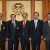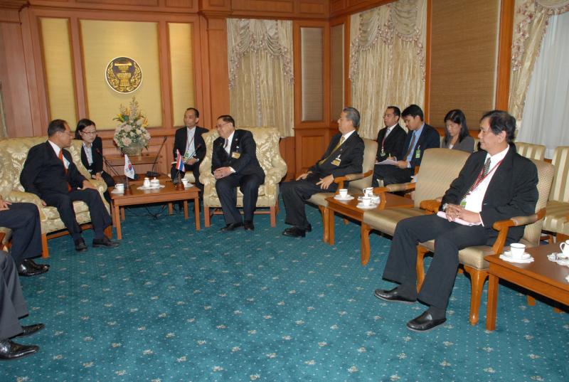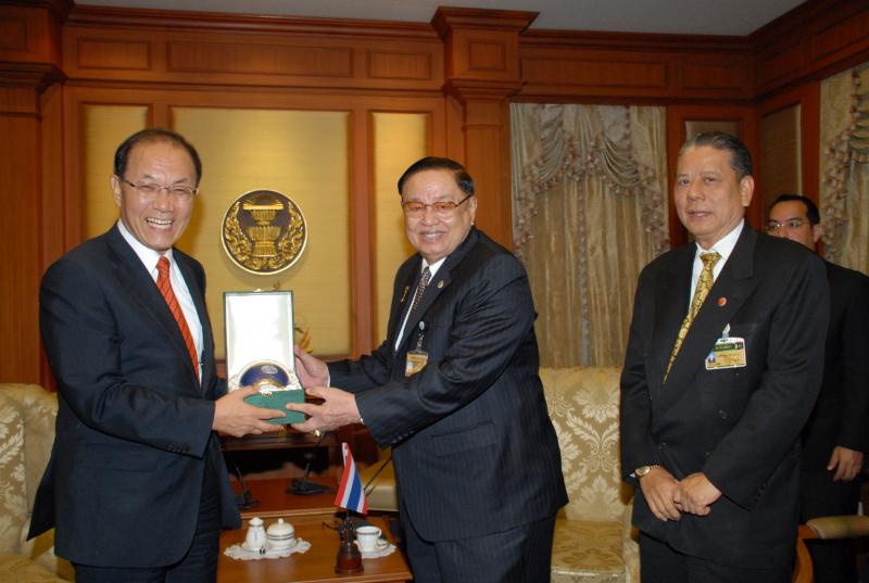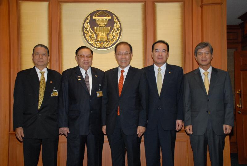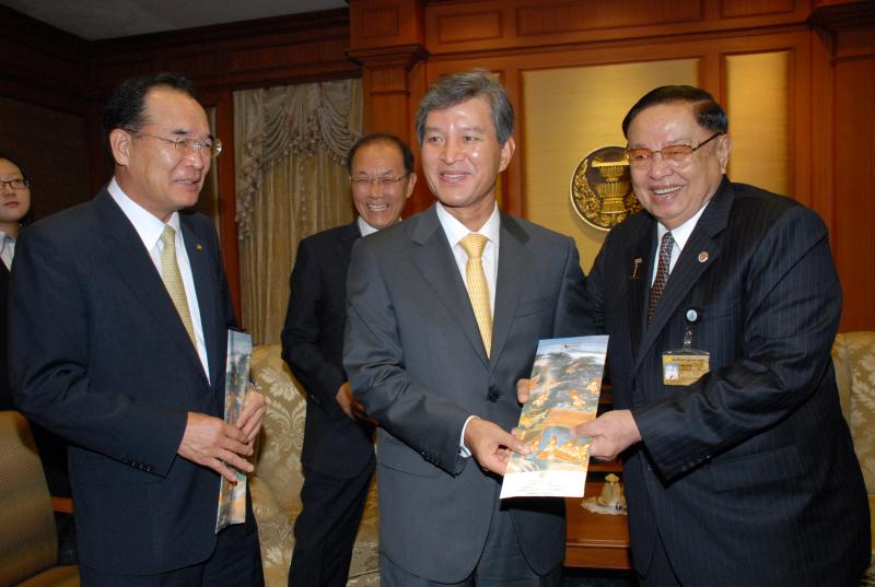 | วันจันทร์ที่ ๑๙ กรกฎาคม ๒๕๕๓ เวลา ๐๙.๐๐ นาฬิกา ณ ห้องรับรอง ๒ ชั้น ๒ อาคารรัฐสภา ๑ นายชัย ชิดชอบ ประธานรัฐสภา และประธานสภาผู้แทนราษฎร พร้อมด้วยนายธีระจิตต์ สถิโรตมวงศ์ ประธานกลุ่มมิตรภาพสมาชิกรัฐสภาไทย-สาธารณรัฐเกาหลี ร่วมให้การรับรองนายฮวัง อู ยอ ประธานกลุ่มมิตรภาพสมาชิกรัฐสภาสาธารณรัฐเกาหลี-ไทย นายชอง แฮ มูน เอกอัครราชทูตสาธารณรัฐเกาหลีประจำประเทศไทย และนายแบ ยอง ซิค สมาชิกรัฐสภาสาธารณรัฐเกาหลี ที่เข้าเยี่ยมคารวะเพื่อกระชับความสัมพันธ์อันดีระหว่างสาธารณรัฐเกาหลีและไทย |