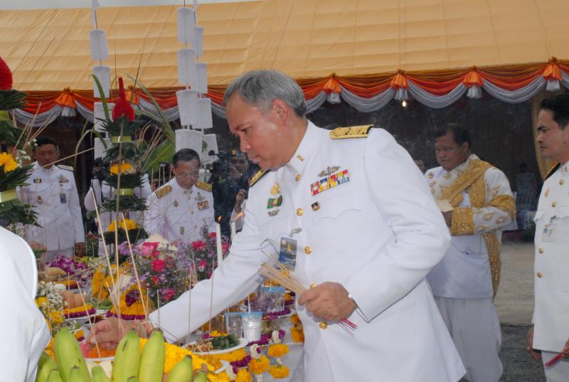 | วันพฤหัสบดีที่ ๑๒ สิงหาคม ๒๕๕๓ เวลา ๐๘.๔๙ นาฬิกา นายชัย ชิดชอบ ประธานรัฐสภา เป็นประธานในพิธีบวงสรวงบูชาฤกษ์ พิธีวางศิลาฤกษ์อาคารรัฐสภา ณ พื้นที่ราชพัสดุถนนทหาร (เกียกกาย) เขตดุสิต กรุงเทพมหานคร ประธานรัฐสภา จุดธูปเทียนบูชาฤกษ์ที่โต๊ะเครื่องบวงสรวง จากนั้นประธานรัฐสภา ประธานวุฒิสภา และคณะร่วมกันจุดธูปบริวารที่เครื่องสังเวย เสร็จแล้วยืนรอรับฟังโองการบูชาบวงสรวง จากหัวหน้าโหรพราหมณ์ |