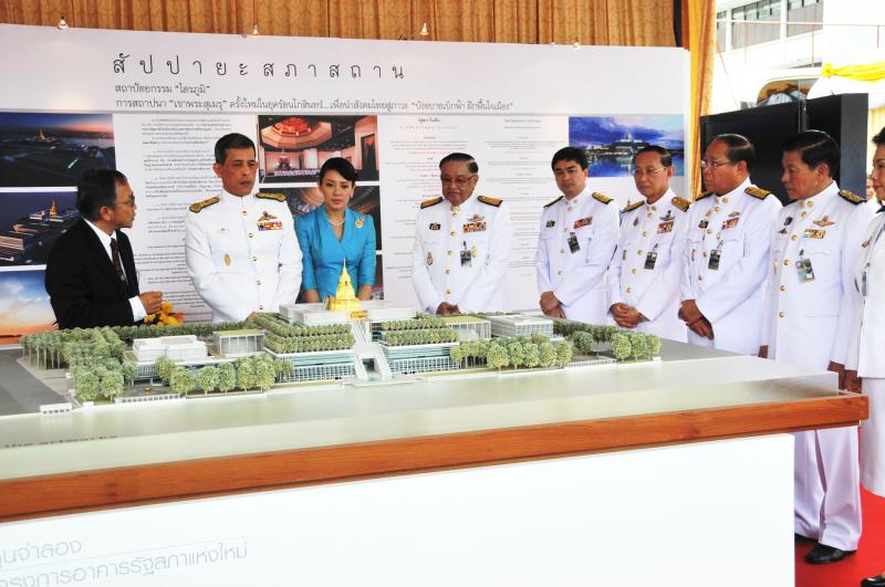 | วันพฤหัสบดีที่ ๑๒ สิงหาคม ๒๕๕๓ เวลา ๑๐.๐๐ นาฬิกา พระบาทสมเด็จพระเจ้าหัวอยู่ ทรงพระกรุณาโปรดเกล้าฯ ให้สมเด็จพระบรมโอรสาธิราชฯ สยามมกุฎราชกุมาร เสด็จพระราชดำเนินแทนพระองค์ พร้อมด้วยพระเจ้าวรวงศ์เธอ พระองค์เจ้าศรีรัศมิ์ พระวรชายา ในสมเด็จพระบรมโอรสาธิราชฯ สยามมกุฎราชกุมาร ทรงประกอบพิธีวางศิลาฤกษ์อาคารรัฐสภา ณ พื้นที่ราชพัสดุถนนทหาร (เกียกกาย) เขตดุสิต กรุงเทพมหานคร โดยมีประธานรัฐสภา นายกรัฐมนตรี และ ประธานวุฒิสภา เฝ้ารับเสด็จฯ ประธานรัฐสภา กราบบังคมทูลถวายรายงาน วัตถุประสงค์ของการก่อสร้างอาคารรัฐสภา และทูลเกล้าฯ ถวายเหรียญ ที่ระลึกและสูจิบัตร ในโอกาสนี้สมเด็จพระบรมโอรสาธิราชฯ เสด็จทอด พระเนตรนิทรรศการและแบบจำลองอาคารรัฐสภา |