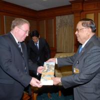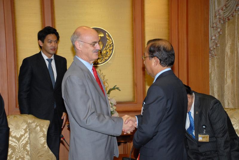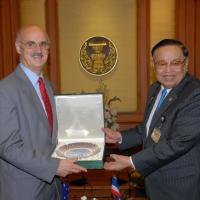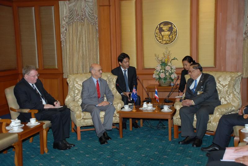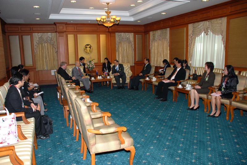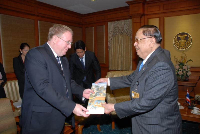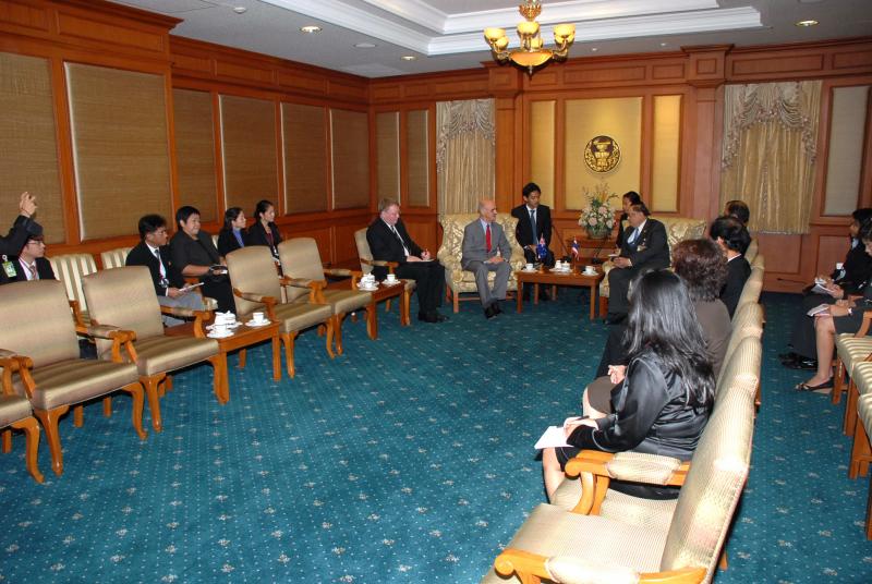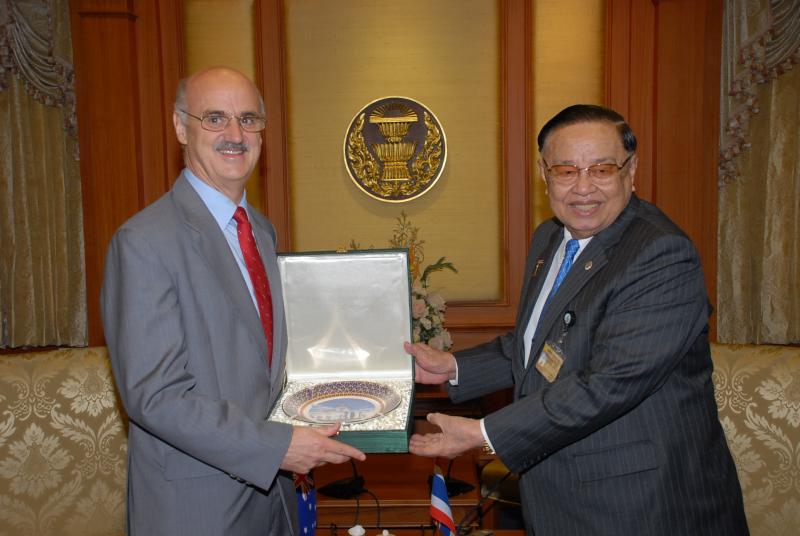 | วันศุกร์ที่ ๑ ตุลาคม ๒๕๕๓ เวลา ๐๙.๐๐ นาฬิกา ณ ห้องรับรอง ๒ ชั้น ๒ อาคารรัฐสภา ๑ นายชัย ชิดชอบ ประธานรัฐสภาและประธานสภาผู้แทนราษฎร ให้การรับรองนายเจมส์ โจเซฟ ไวส์ เอกอัครราชทูตเครือรัฐออสเตรเลียประจำประเทศไทยในโอกาสเข้ารับตำแหน่งใหม่ |
