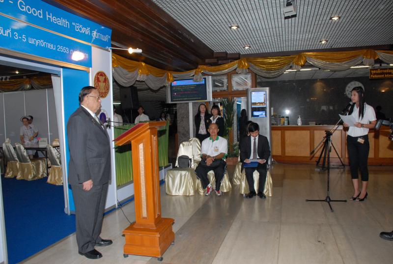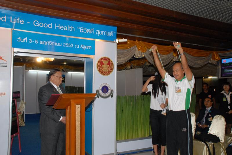 | วันพุธที่ ๓ พฤศจิกายน ๒๕๕๓ เวลา ๐๘.๓๐ นาฬิกา ณ บริเวณห้องโถง อาคารรัฐสภา ๑ นายชัย ชิดชอบ ประธานรัฐสภา และประธานสภาผู้แทนราษฎร เป็นประธานในพิธีเปิดกิจกรรม "Good Life - Good Health : ชีวิตดี สุขภาพดี" พร้อมทั้งโชว์ยิงลูกโทษ "เตะโรคร้ายให้ห่างไกลจากสุขภาพ" ซึ่งจัดโดยสำนักงานเลขาธิการสภาผู้แทนราษฎร ร่วมกับสำนักงานกองทุนสนับสนุนการสร้างเสริมสุขภาพ (สสส.) คณะแพทย์ศาสตร์ โรงพยาบาลรามาธิบดี และเครือข่ายคนไทยไร้พุง เพื่อตรวจสุขภาพป้องกันปัจจัยเสี่ยงของโรค และการดูแลสุขภาพในกลุ่มสมาชิกสภาผู้แทนราษฎร สมาชิกวุฒิสภา เจ้าหน้าที่รัฐสภา และสื่อมวลชน เพื่อเป็นต้นแบบของการดูแลสุขภาพ |
