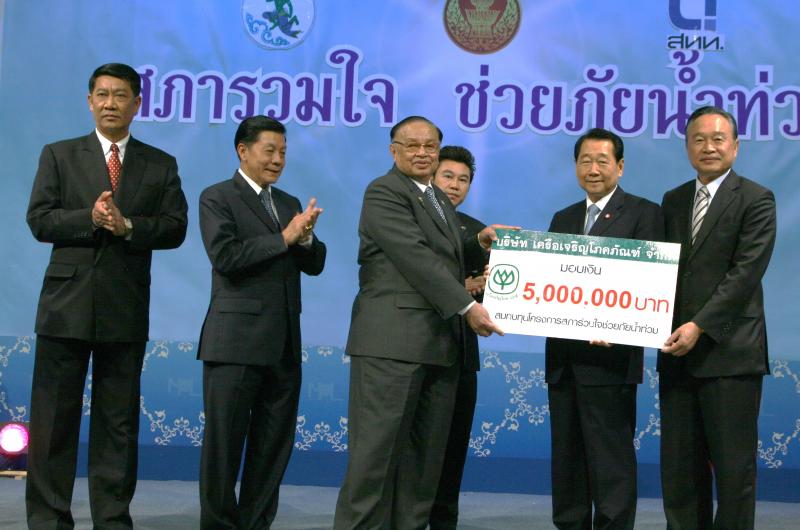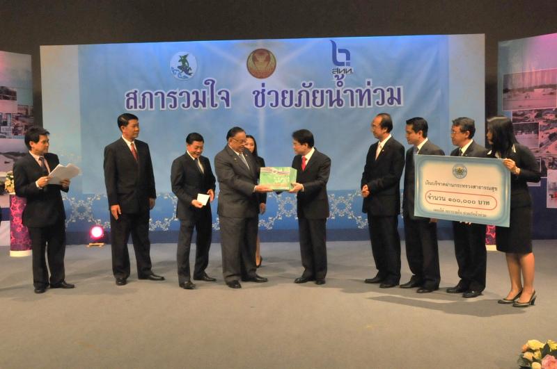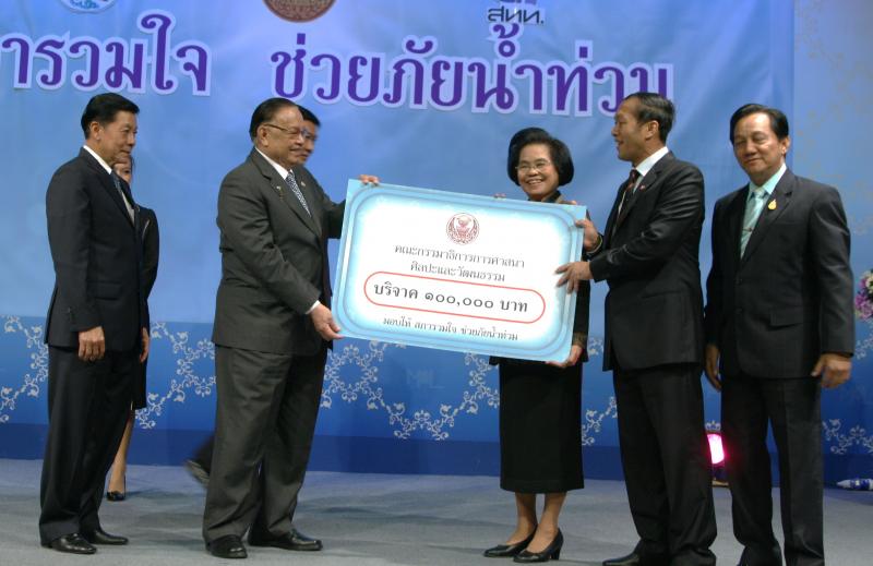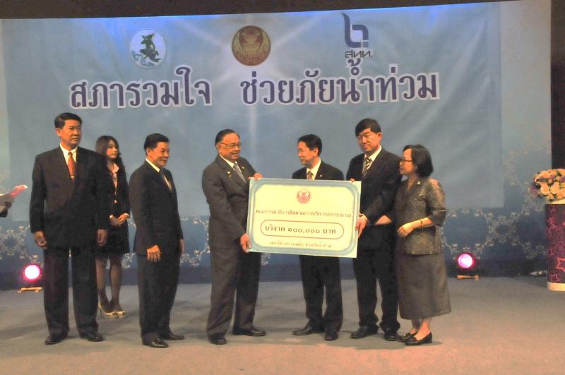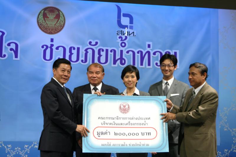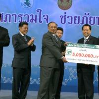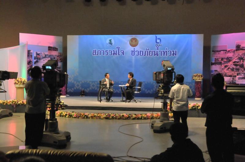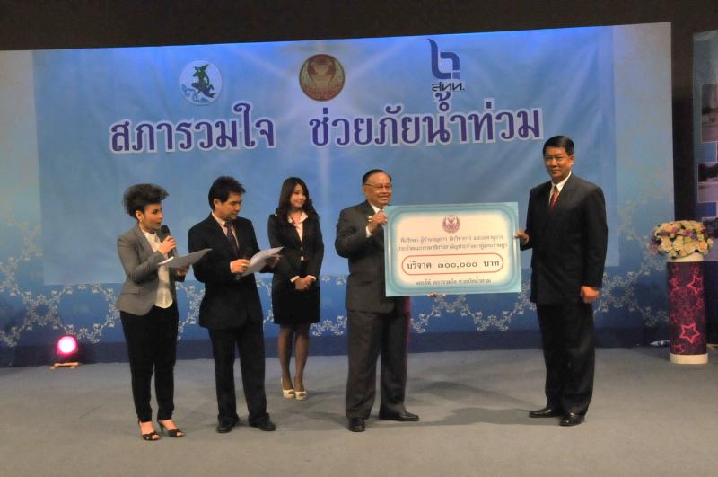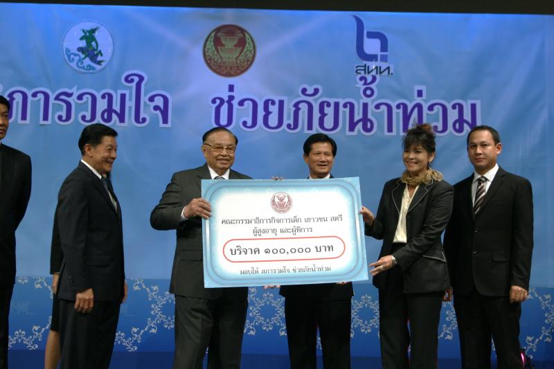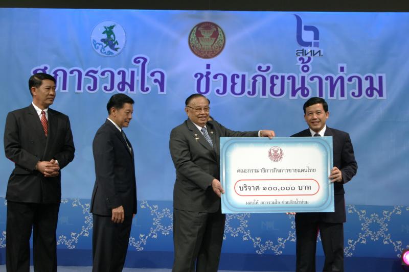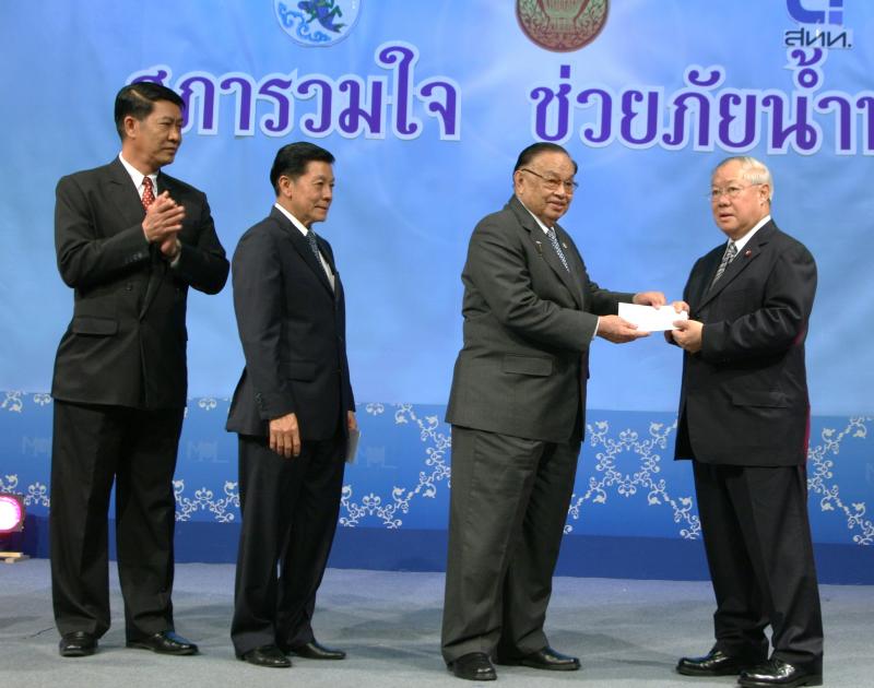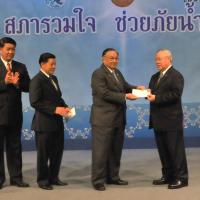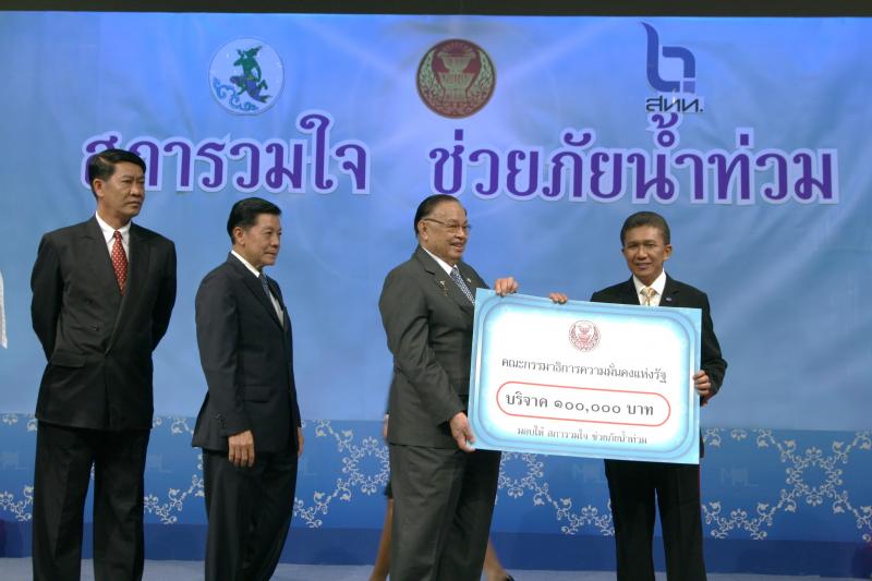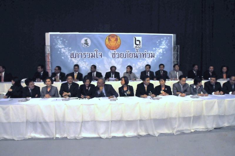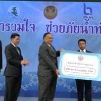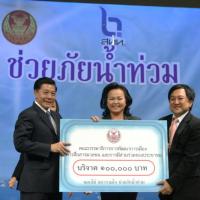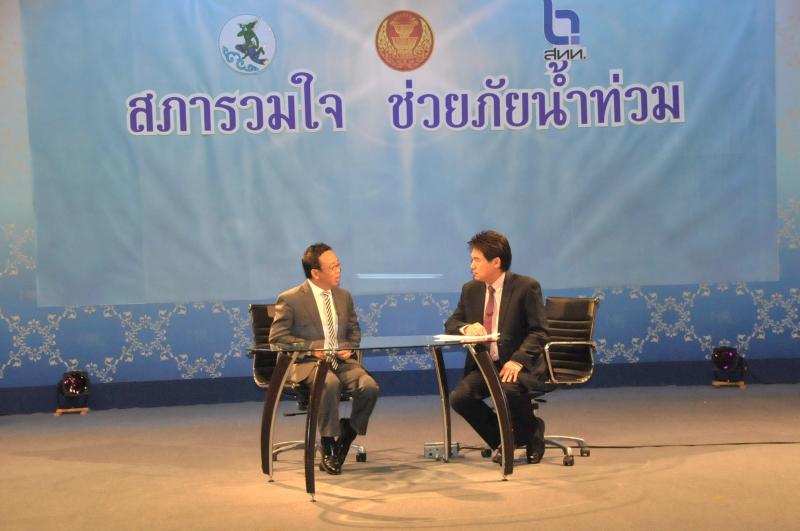 | วันพุธที่ ๑๐ พฤศจิกายน ๒๕๕๓ รัฐสภาโดยคณะกรรมการดำเนินการให้ความช่วยเหลือผู้ประสบอุทกภัย ซึ่งนายศักดา คงเพชร ประธานคณะกรรมาธิการกิจการสภาผู้แทนราษฎร เป็นประธานได้จัดรายการพิเศษ "สภารวมใจ ช่วยภัยน้ำท่วม" ถ่ายทอดสดทางสถานีโทรทัศน์แห่งประเทศไทย กรมประชาสัมพันธ์ โดยมีนายชัย ชิดชอบ ประธานรัฐสภา เป็นประธานในการรับมอบเงินบริจาค จากคณะกรรมาธิการสามัญประจำสภาผู้แทนราษฎร จำนวน ๓๕ คณะ เป็นเงินจำนวน ๔ ล้านกว่าบาท และรับมอบเงินบริจาค จากนายธนินทร์ เจียรวนนท์ ประธานกรรมการและประธานคณะผู้บริหารเครือเจริญโภคภัณฑ์ เป็นเงินจำนวน ๕ ล้านบาท โดยการจัดรายการดังกล่าวมีผู้มีจิตศรัทธาจากภาคส่วนต่าง ๆ ร่วมบริจาคผ่านรายการเป็นเงินจำนวน ๑๖ ล้าน ๘ แสนกว่าบาท ซึ่งจะได้นำไปจัดหาเครื่องอุปโภค บริโภค และสิ่งของจำเป็นเพื่อช่วยเหลือผู้ประสบภัยน้ำท่วมต่อไป |