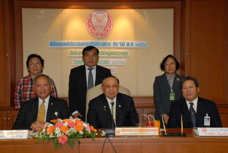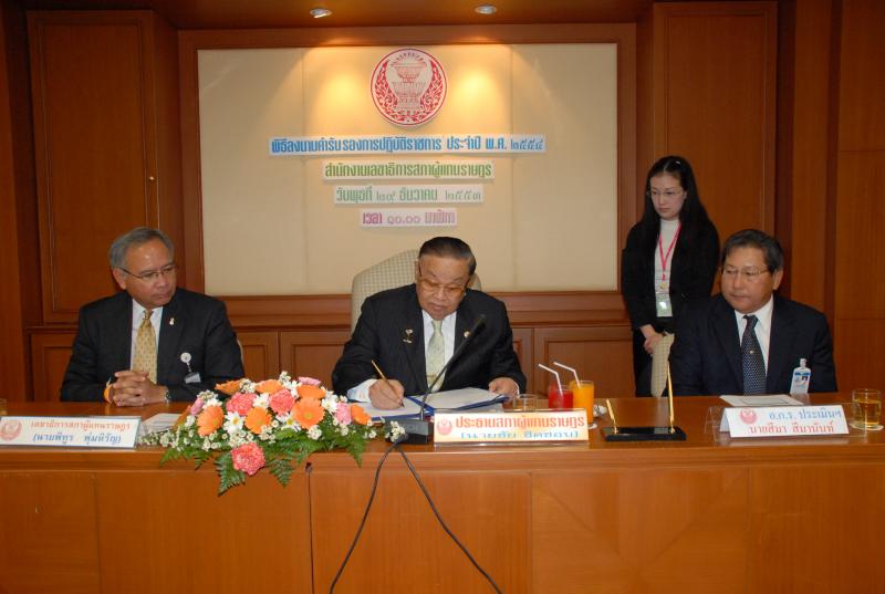 | วันพุธที่ ๒๙ ธันวาคม ๒๕๕๓ เวลา ๑๐.๐๐ นาฬิกา ณ ห้องประชุมกรรมาธิการหมายเลข ๓๗๐๑ ชั้น ๗ อาคารรัฐสภา ๓ นายชัย ชิดชอบ ประธานรัฐสภา และประธานสภาผู้แทนราษฎร เป็นประธานในพิธีลงนามคำรับรองการปฏิบัติราชการประจำปี พ.ศ.๒๕๕๔ สำนักงานเลขาธิการสภาผู้แทนราษฎร |