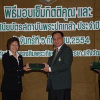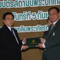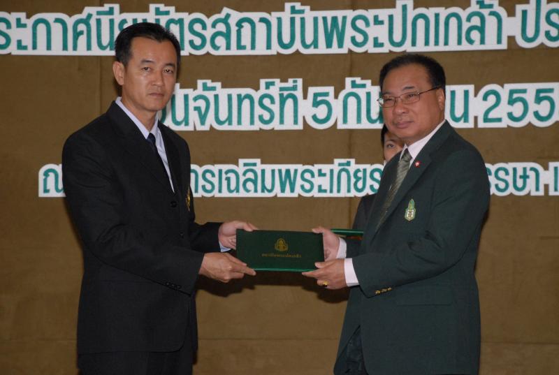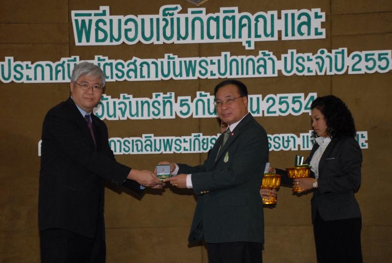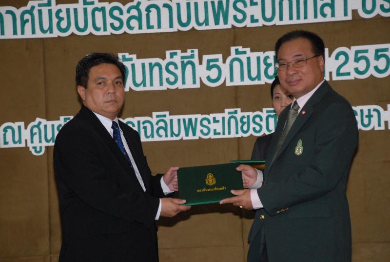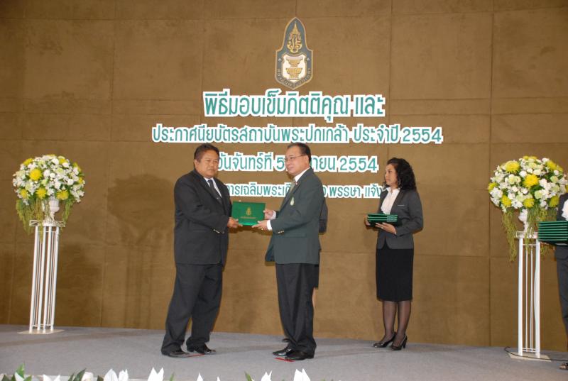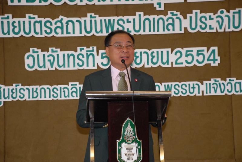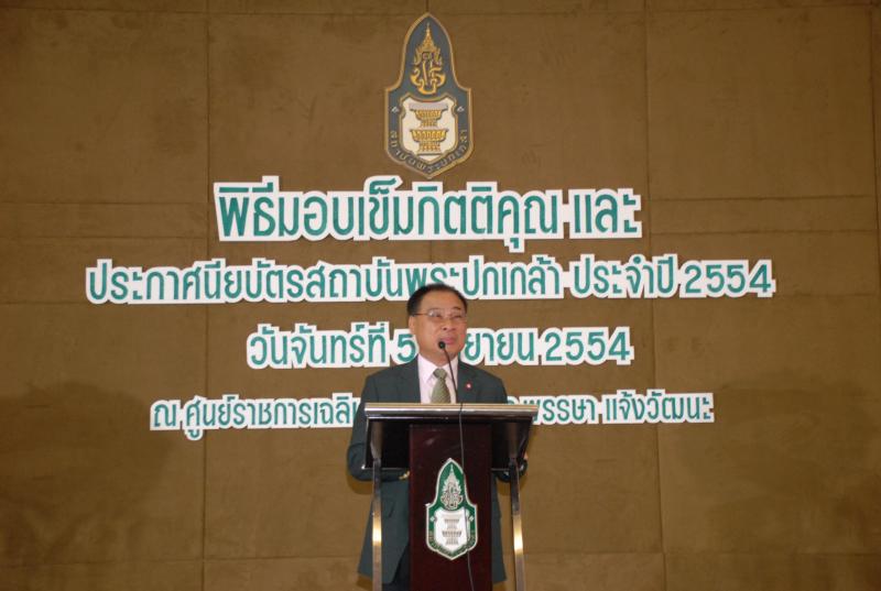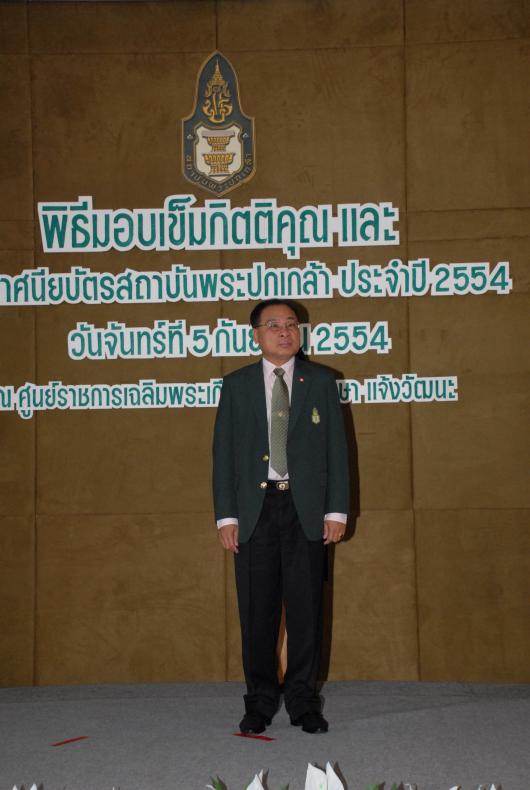 | วันจันทร์ที่ ๕ กันยายน ๒๕๕๔ เวลา ๑๓.๓๐ นาฬิกา ณ ห้องวายุภักษ์ ๑-๒ ชั้น ๕ อาคารศูนย์ประชุม (โซนทิศเหนือ) ศูนย์ราชการเฉลิมพระเกียรติ ๘๐ พรรษาฯ ถนนแจ้งวัฒนะ กรุงเทพฯ นายสมศักดิ์ เกียรติสุรนนท์ ประธานรัฐสภา และประธานสภาผู้แทนราษฎร ในฐานะประธานสภาสถาบันพระปกเกล้า เป็นประธานในพิธีมอบประกาศนียบัตรแก่ผู้สำเร็จการศึกษาของสถาบันพระปกเกล้า โดยมีนายบวรศักดิ์ อุวรรณโณ เลขาธิการสถาบันพระปกเกล้า กล่าวรายงาน |