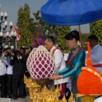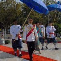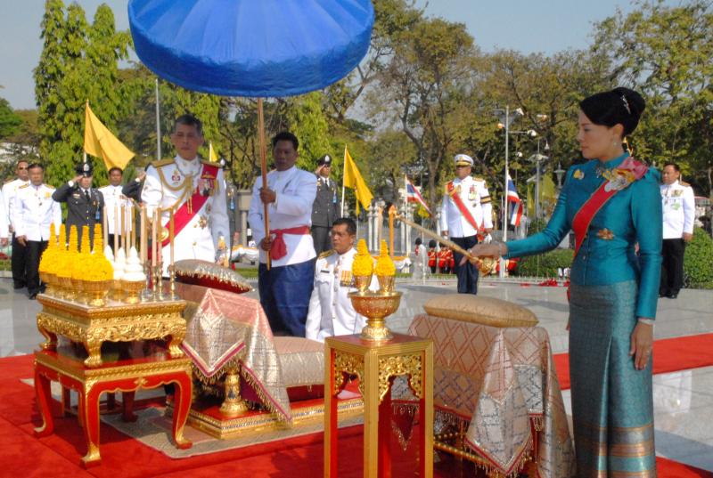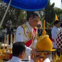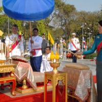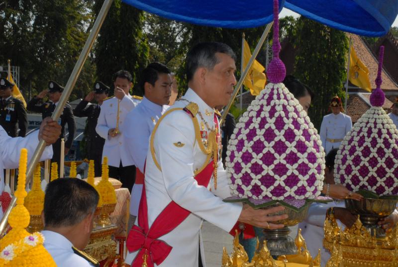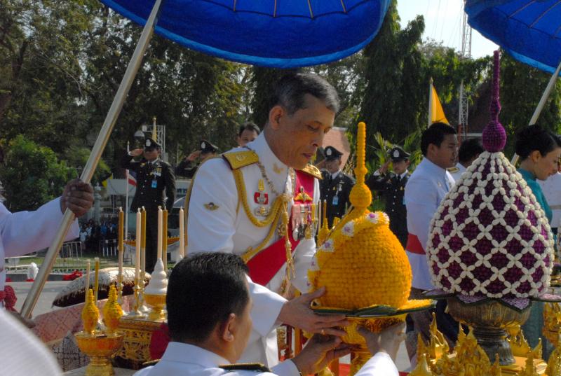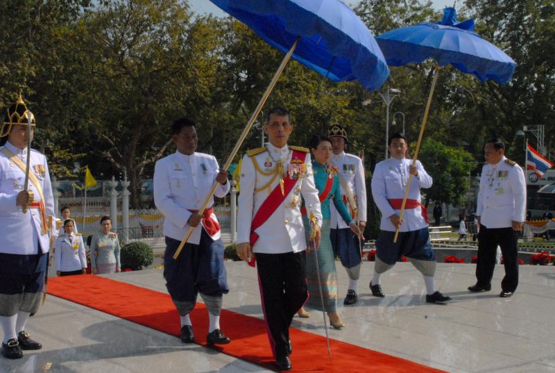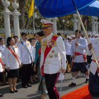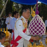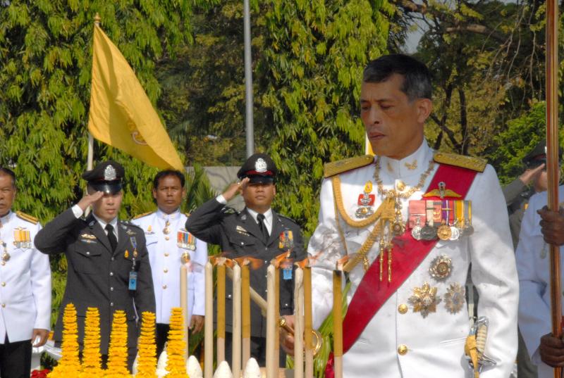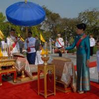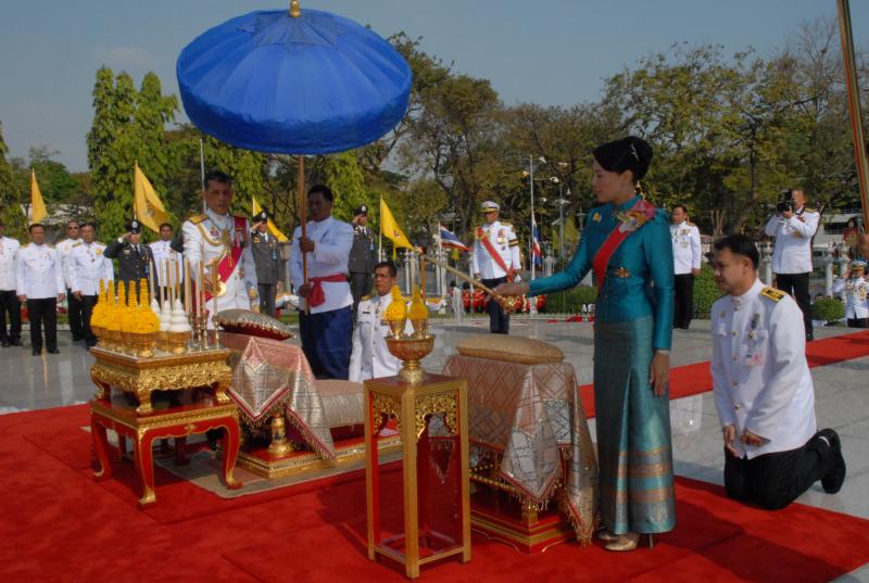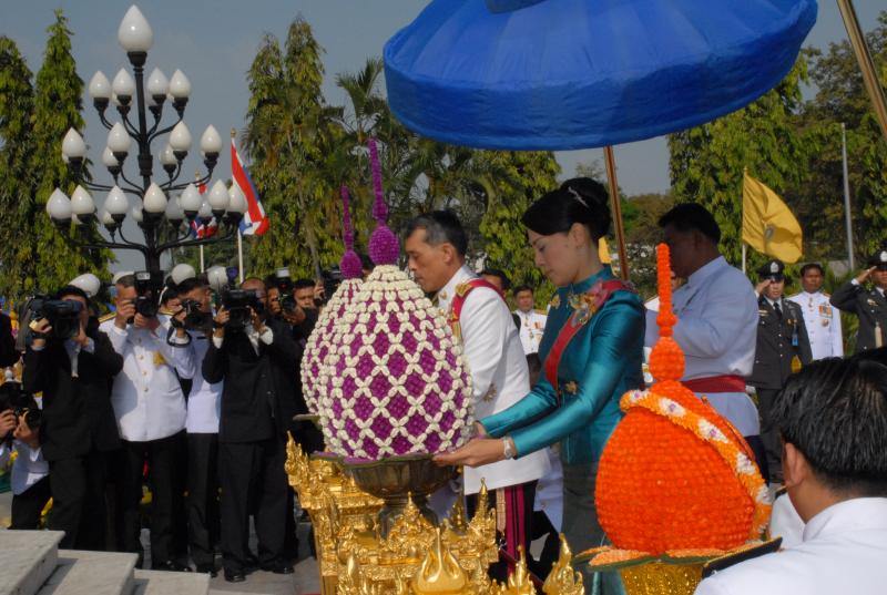 สมเด็จพระบรมโอรสาธิราชเจ้าฟ้ามหาวชิราลงกรณ สยามมกุฎราชกุมาร ทรงวางพุ่มดอกไม้ถวายบังคมพระบาทสมเด็จพระปกเกล้าเจ้าอยู่หัว