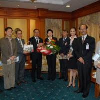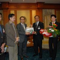 | วันพุธที่ ๑๑ มกราคม ๒๕๕๕ เวลา ๑๒.๔๐ นาฬิกา ณ ห้องรับรอง ๒ ชั้น ๒ อาคารรัฐสภา ๑ นายสมศักดิ์ เกียรติสุรนนท์ ประธานรัฐสภา และประธานสภาผู้แทนราษฎร รับกระเช้าผลไม้และของขวัญ อวยพรปีใหม่ จาก ดร.ภูวนิดา คุนผลิน พร้อมคณะ ในนามที่ปรึกษาด้านต่างประเทศ สภาผู้แทนราษฎร |