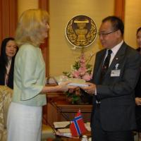 วันอังคารที่ ๑๗ มกราคม ๒๕๕๕ เวลา ๑๑.๐๐ นาฬิกา ณ ห้องรับรอง ๒ ชั้น ๒ อาคารรัฐสภา ๑ นายนายสมศักดิ์ เกียรติสุรนนท์ ประธานรัฐสภาและประธานสภาผู้แทนราษฎร ให้การรับรองนางคัทยา คริสทีนา โนร์ดการ์ด เอกอัครราชทูตราชอาณาจักรนอร์เวย์ประจำประเทศไทย เข้าเยี่ยมคารวะเนื่องในโอกาสแนะนำตัว