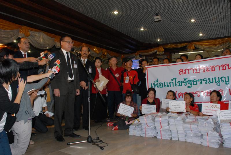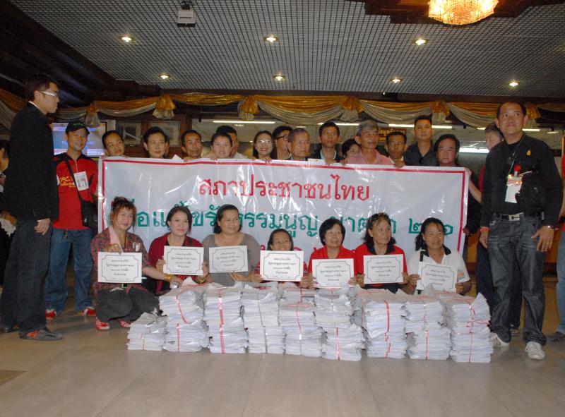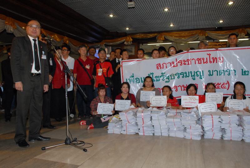 ประธานรัฐสภา รับหนังสือเพื่อเสนอแก้ไขรัฐธรรมนูญ มาตรา ๒๙๑ จากประธานสมาพันธ์ประชาชนรักประชาธิปไตย ๒๐ จังหวัดภาคอีสาน