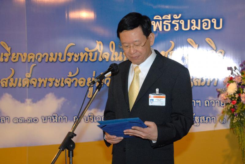 พิธีรับมอบหนังสือบันทึกบทความร้อยเรียงความประทับใจในพระราชกรณียกิจพระบาทสมเด็จพระเจ้าอยู่หัวของสมาชิกรัฐสภา เพื่อนำขึ้นทูลเกล้าฯ ถวาย