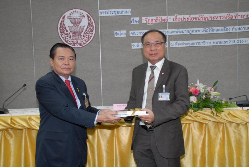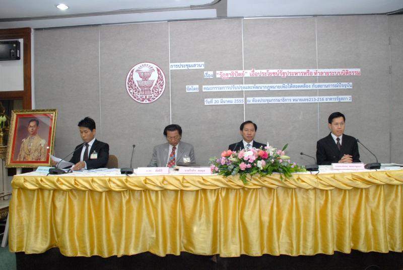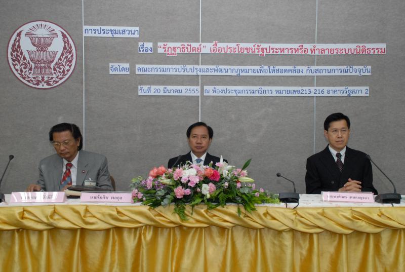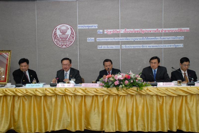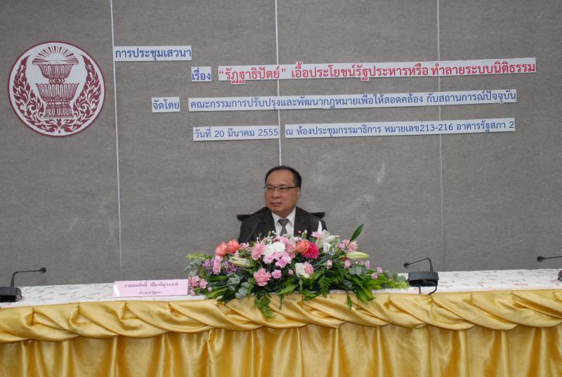 วันอังคารที่ ๒๐ มีนาคม ๒๕๕๕ เวลา ๒๕๕๕ เวลา ๐๙.๐๐ นาฬิกา นายสมศักดิ์ เกียรติสุรนนท์ ประธานรัฐสภา และประธานสภาผู้แทนราษฎร เป็นประธานเปิดการประชุมสัมมนา เรื่อง "รัฏฐาธิปัตย์" เอื้อประโยชน์รัฐประหารหรือทำลายระบบนิติธรรม ณ ห้องประชุมกรรมาธิการ ๒๑๓-๒๑๖ ชั้น ๒ อาคารรัฐสภา ๒