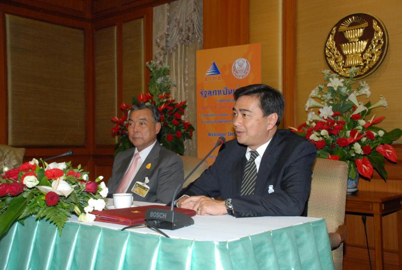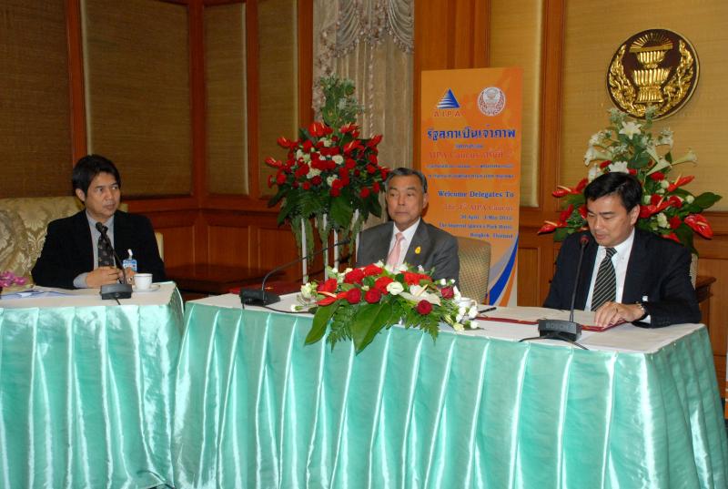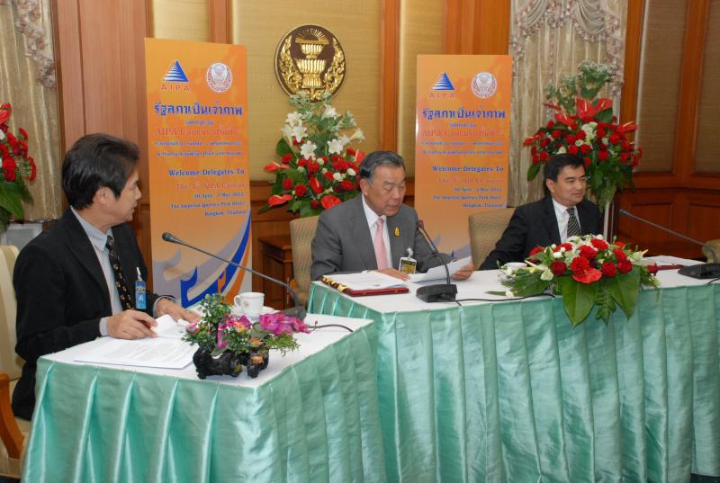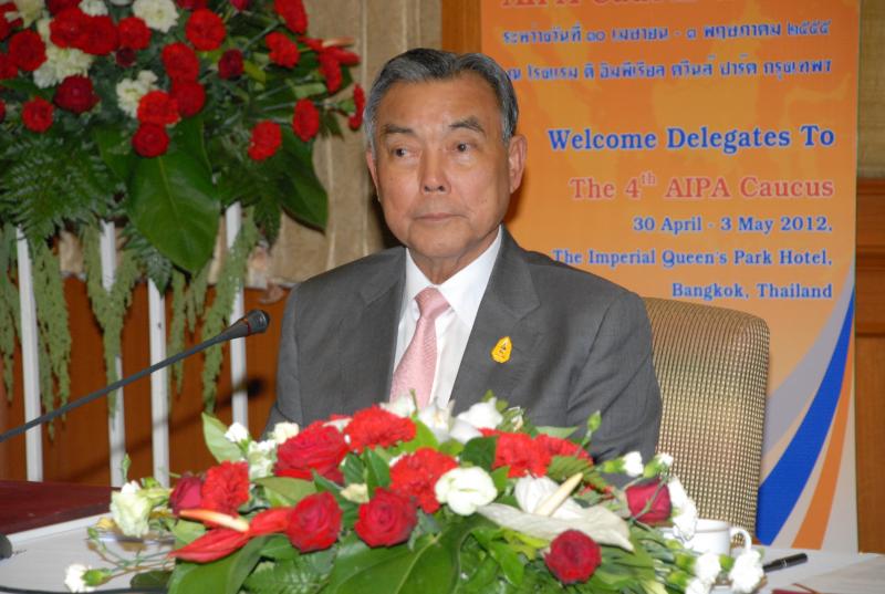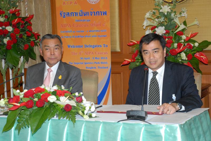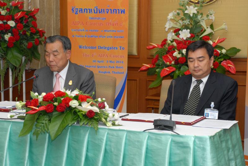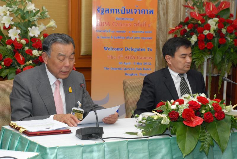 | วันพุธที่ ๒๕ เมษายน ๒๕๕๕ เวลา ๑๔.๐๐ นาฬิกา ณ ห้องรับรอง ชั้น ๒ อาคารรัฐสภา ๑ พลเอกธีรเดช มีเพียร ประธานวุฒิสภา และนายอภิสิทธิ์ เวชชาชีวะ ผู้นำฝ่ายค้านในสภาผู้แทนราษฎร ร่วมกันแถลงข่าว รัฐสภาไทยเป็นเจ้าภาพจัดการประชุม AIPA Caucus ครั้งที่ ๔ ในระหว่างวันที่ ๓๐ เมษายน ถึง ๓ พฤษภาคม ๒๕๕๕ ณ โรงแรม ดิ อิมพีเรียล ควีนส์ ปาร์ค กรุงเทพฯ มีสมาชิกจาก ๑๐ ประเทศ เข้าร่วมประชุม โดยมีนายคัมภีร์ ดิษฐากรณ์ รองเลขาธิการสภาผู้แทนราษฎร เป็นผู้ดำเนินรายการ |