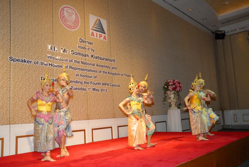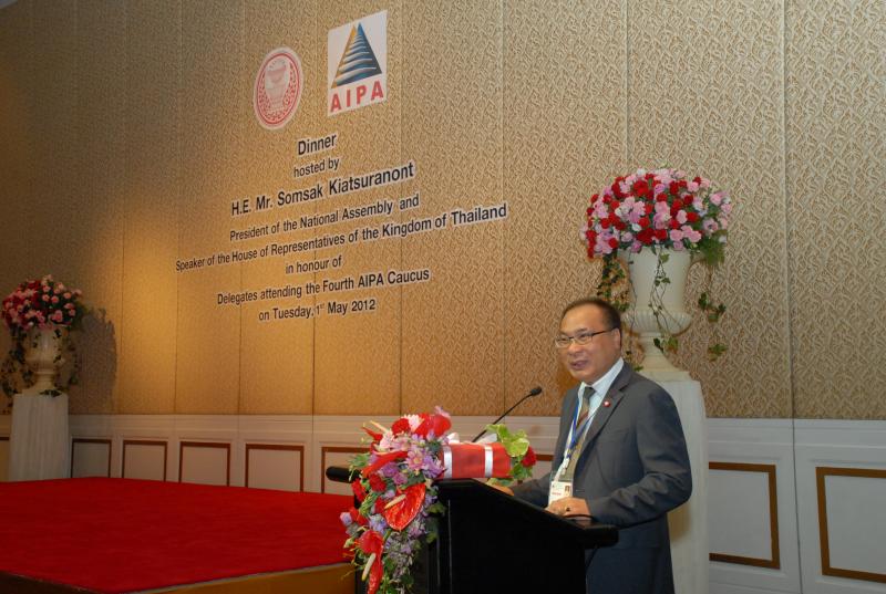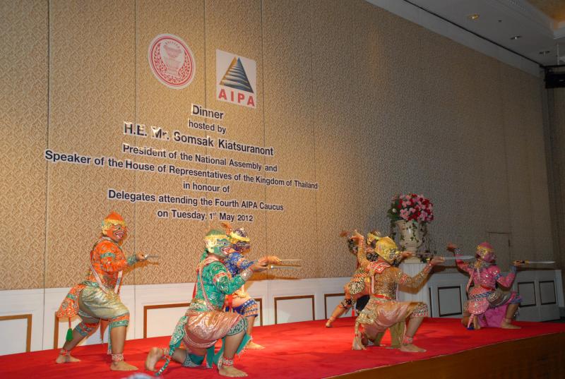 วันอังคารที่ ๑ พฤษภาคม ๒๕๕๕ เวลา ๑๙.๐๐ นาฬิกา ณ  โรงแรมอิมพีเรียล ควีนส์ปาร์ค กรุงเทพฯ นายสมศักดิ์ เกียรติสุรนนท์ ประธานรัฐสภา และประธานสภาผู้แทนราษฎร เป็นประธานเลี้ยงอาหารค่ำคณะผู้แทนรัฐสภาจากประเทศสมาชิกที่เข้าร่วมการประชุม AIPA Caucus ครั้งที่ ๔