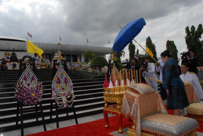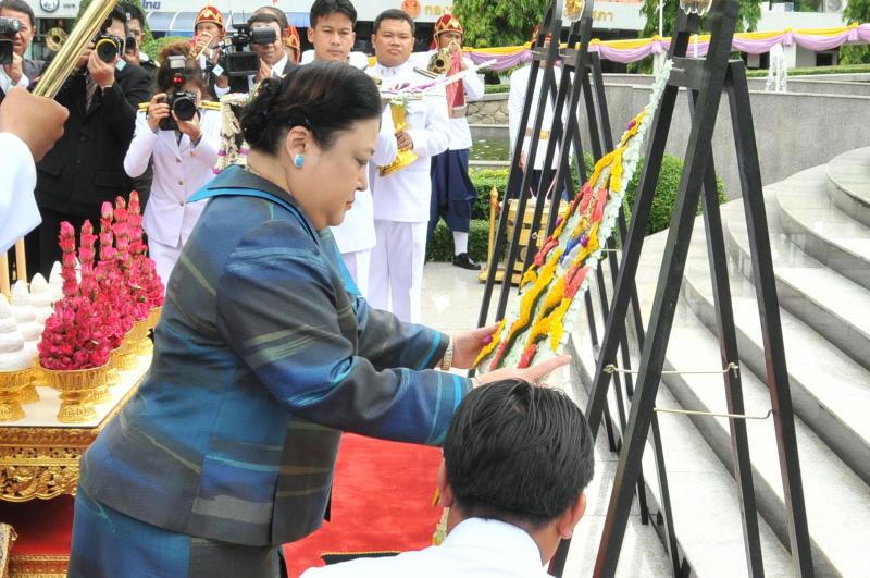พระเจ้าวรวงศ์เธอ พระองค์เจ้าโสมสวลี พระวรราชาทินัดดามาตุ ทรงวางพวงมาลาของพระบาทสมเด็จพระเจ้าอยู่หัว ของสมเด็จพระนางเจ้าฯ พระบรมราชินีนาถ และพวงมาลาของส่วนพระองค์ ถวายราชสักการะพระบรมราชานุสาวรีย์พระบาทสมเด็จพระปกเกล้าเจ้าอยู่ห้ว