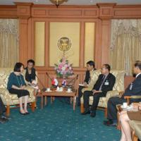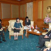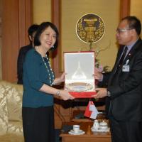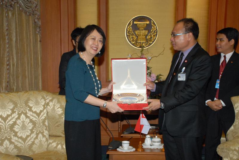 | วันจันทร์ที่ ๑๘ มิถุนายน ๒๕๕๕ เวลา ๑๕.๐๐ นาฬิกา ณ ห้องรับรอง ชั้น ๒ อาคารรัฐสภา ๑ นายสมศักดิ์ เกียรติสุรนนท์ ประธานรัฐสภา และประธานสภาผู้แทนราษฎร ให้การรับรอง นางฉั่ว ซิ่ว ซาน เอกอัครราชทูตสาธารณรัฐสิงคโปร์ประจำประเทศไทย เนื่องในโอกาสเข้ารับตำแหน่งเอกอัครราชทูตสาธารณรัฐสิงคโปร์ประจำประเทศไทย |