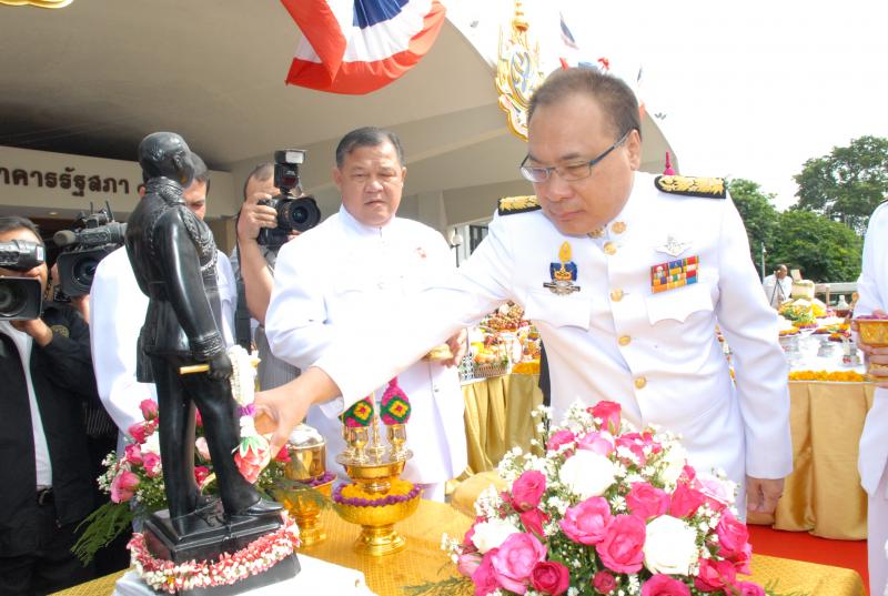 ประธานรัฐสภา และประธานสภาผู้แทนราษฎร เป็นประธานในพิธีบวงสรวงพระวิญญาณอดีตพระมหากษัตริย์ เนื่องในวันสถาปนารัฐสภา ครบรอบ ๘๐ ปี