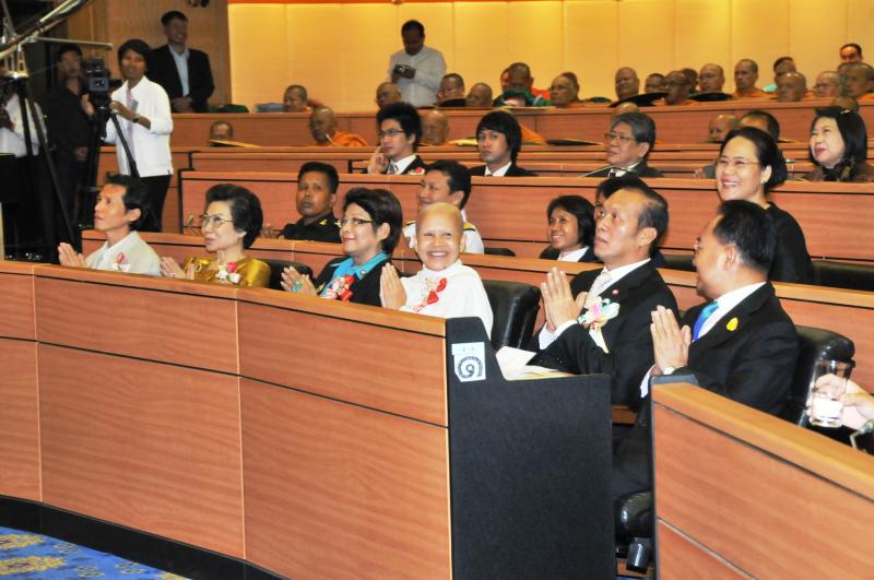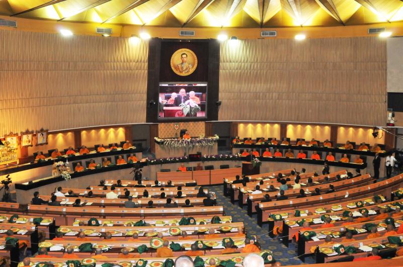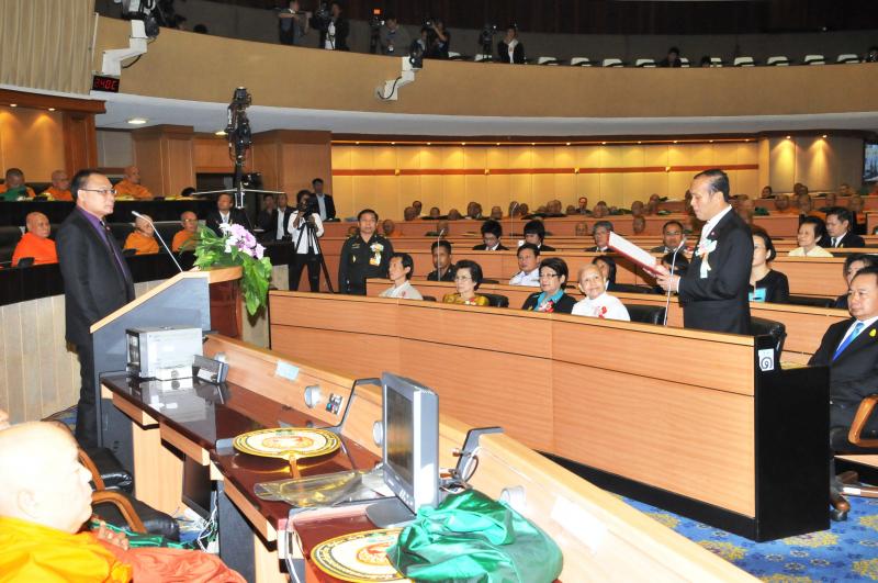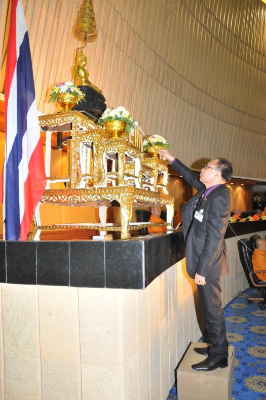 วันศุกร์ที่  ๑๐ สิงหาคม  ๒๕๕๕ เวลา ๑๔.๔๐ นาฬิกา ณ ห้องประชุมรัฐสภา ชั้น ๒ อาคารรัฐสภา ๑ นายสมศักดิ์ เกียรติสุรนนท์ ประธานรัฐสภา เป็นประธานในพิธีฉลองพุทธชยันตี ๒๖๐๐ ปี แห่งการตรัสรู้ของพระพุทธเจ้า พร้อมกับน้อมถวายเป็นพระราชกุศลในอภิมหามงคลสมัยที่พระบาทสมเด็จพระเจ้าอยู่หัว เฉลิมพระชนมพรรษา ๘๕ พรรษา สมเด็จพระนางเจ้าฯ พระบรมราชินีนาถเฉลิมพระชนมพรรษา ๘๐ พรรษา และสมเด็จพระบรมโอรสาธิราช สยามกุฏราชกุมาร ทรงเจริญพระชนมายุครบ ๖๐ พรรษา