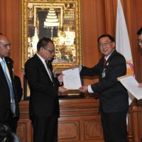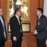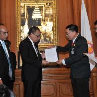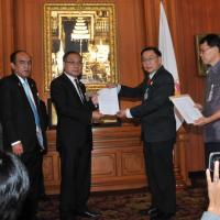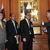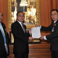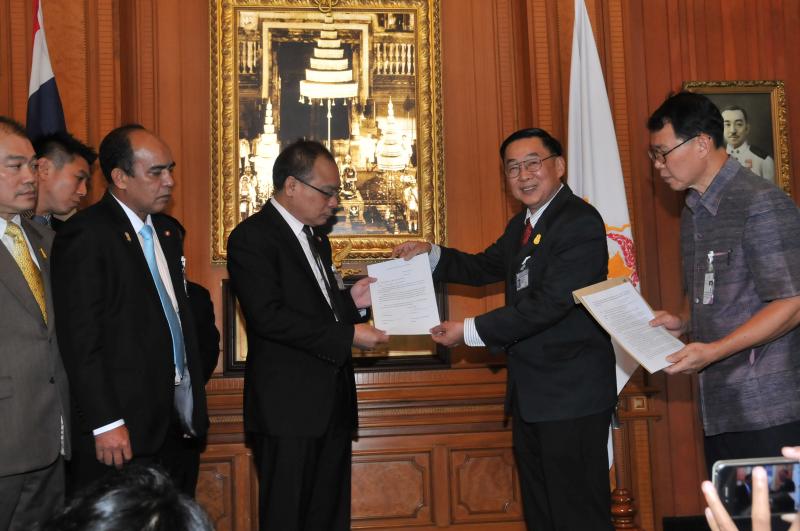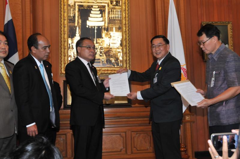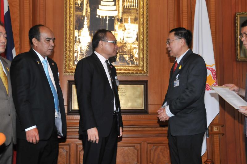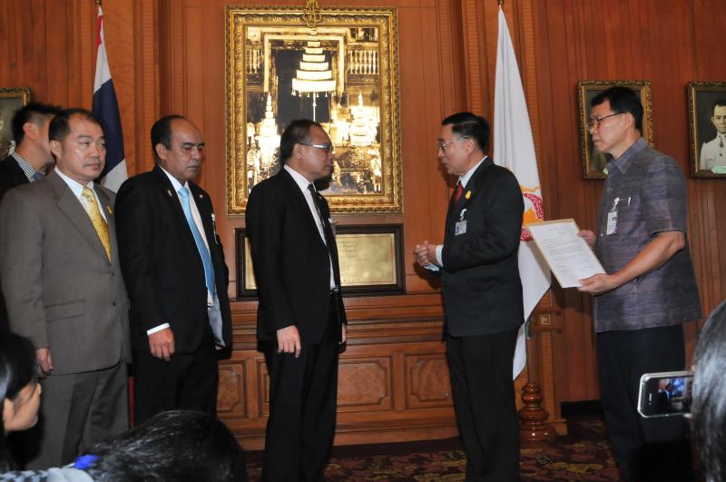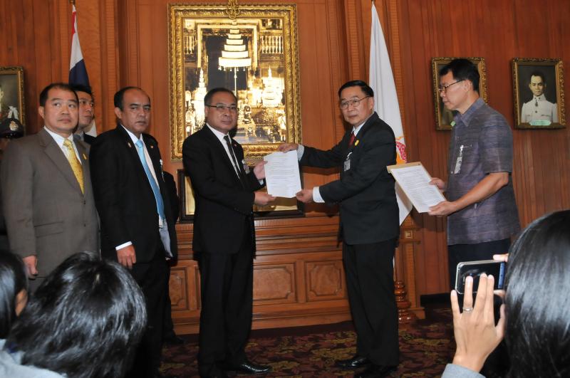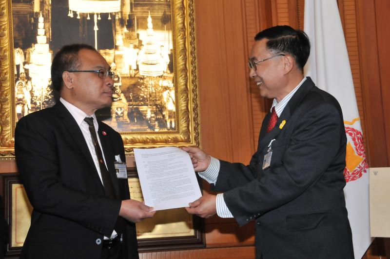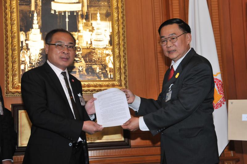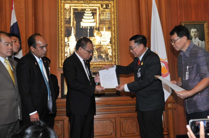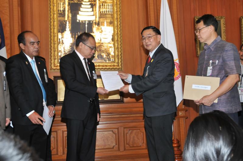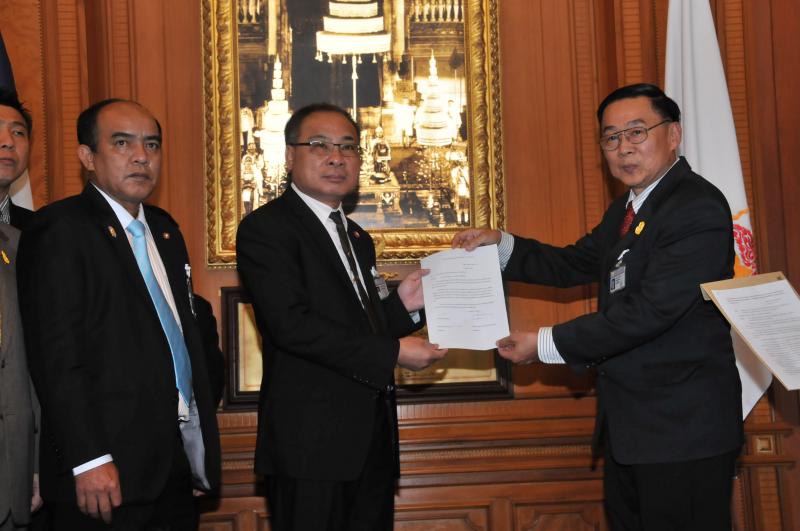 ประธานรัฐสภา และประธานสภาผู้แทนราษฎร รับหนังสือรายงานการสรุปผลการศึกษาเรื่องการชุมนุมทางการเมืองปี ๒๕๕๒ จากนายเหวง โตจิราการ สมาชิกสภาผู้แทนราษฎร แบบบัญชีรายชื่อ พรรคเพื่อไทย และแกนนำแนวร่วมประชาธิปไตยต่อต้านเผด็จการแห่งชาติ (นปช.)