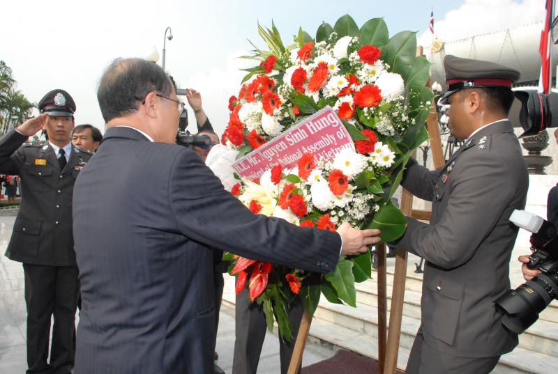 วันจันทร์ที่ ๓ ธันวาคม ๒๕๕๕ เวลา ๐๙.๔๕ นาฬิกา  ณ  ลานพระบรมราชานุสาวรีย์พระบาทสมเด็จพระปกเกล้าเจ้าอยู่ห้ว นายสมศักดิ์  เกียรติสุรนนท์ ประธานรัฐสภา และประธานสภาผู้แทนราษฎร ให้การต้อนรับ และนำนายเหวียน ซิง หุ่ง ประธานสภาแห่งชาติเวียดนาม ทำพิธีวางพวงมาลาถวายราชสักการะพระบาทสมเด็จพระปกเกล้าเจ้าอยู่หัว