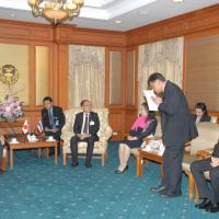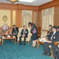 วันศุกร์ที่ ๒๒ กุมภาพันธ์  ๒๕๕๖  เวลา ๑๔.๐๐ นาฬิกา  ณ  ห้องรับรอง  ชั้น ๒ อาคารรัฐสภา ๑  นายสมศักดิ์  เกียรติสุรนนท์  ประธานรัฐสภา และประธานสภาผู้แทนราษฎร  ให้การรับรองนายชิเกะกะซุ  ชะโตะ  เอกอัครราชทูตญี่ปุ่นประจำประเทศไทย