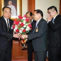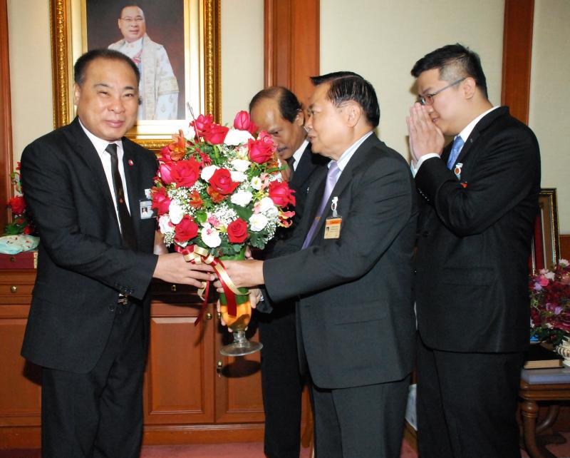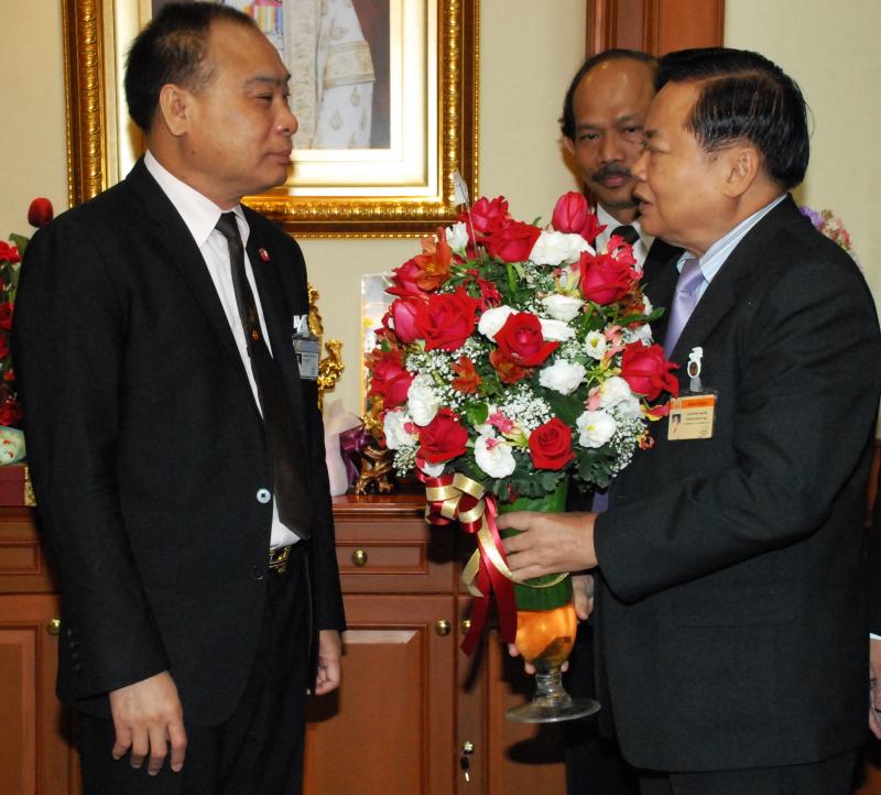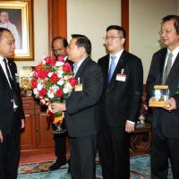 นายสมศักดิ์ เกียรติสุรนนท์ ประธานรัฐสภา และประธานสภาผู้แทนราษฎร รับช่อดอกไม้อวยพรวันคล้ายวันเกิด จากคณะข้าราชการฝ่ายการเมือง