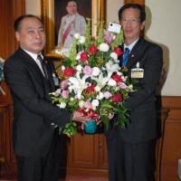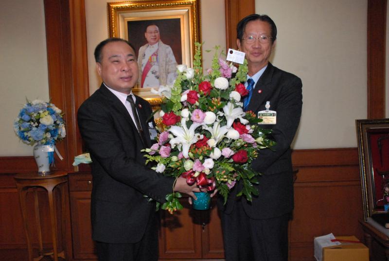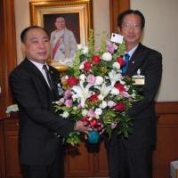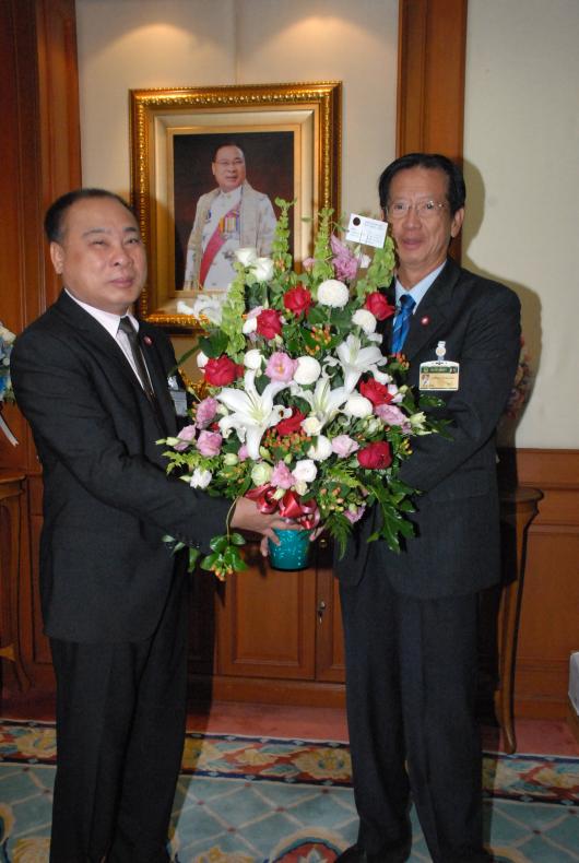 นายสมศักดิ์ เกียรติสุรนนท์ ประธานรัฐสภา และประธานสภาผู้แทนราษฎร รับช่อดอกไม้อวยพรวันคล้ายวันเกิดจากนายอนันต์ อริยะชัยพาณิชย์ รองประธานวุฒิสภา คนที่สอง