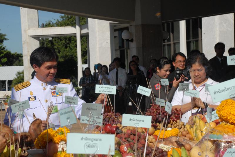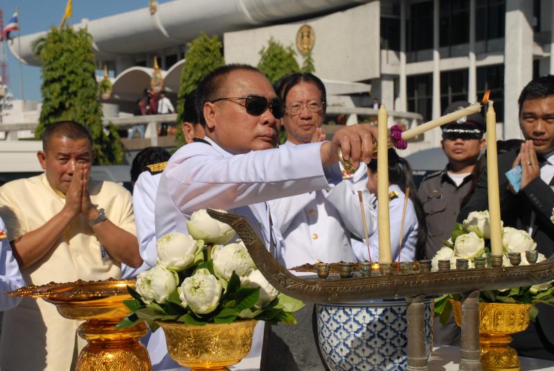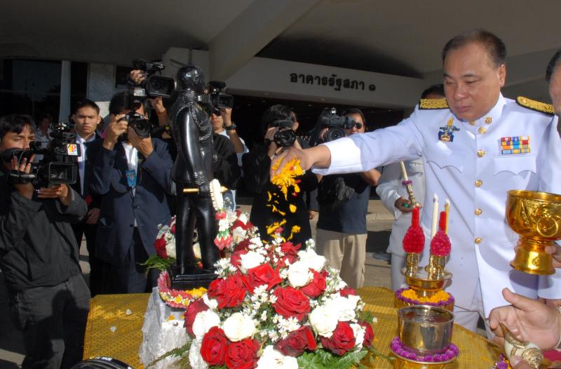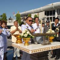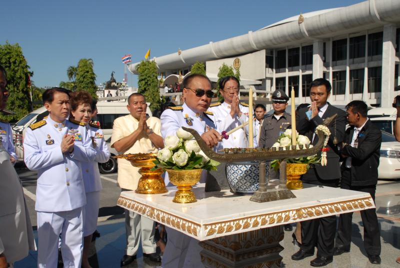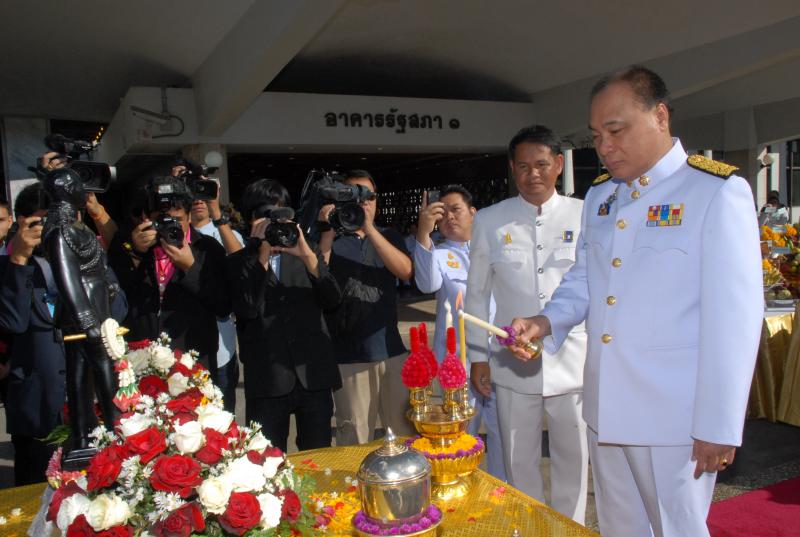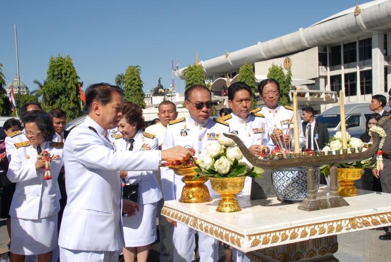 นายสมศักดิ์ เกียรติสุรนนท์ ประธานรัฐสภา และประธานสภาผู้แทนราษฎร เป็นประธานในพิธีบวงสรวงพระวิญญาณอดีตพระมหากษัตริย์ เนื่องในวันสถาปนารัฐสภาครบรอบ ๘๑ ปี