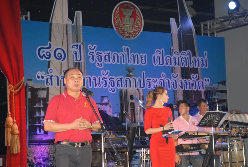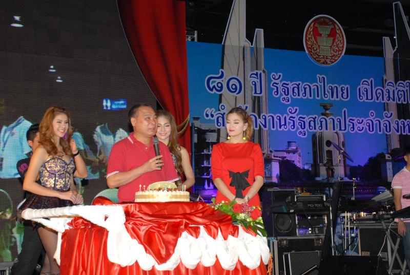 นายสมศักดิ์ เกียรติสุรนนท์ ประธานรัฐสภา และประธานสภาผู้แทนราษฎร เป็นประธานงานเลี้ยงสังสรรค์ในพิธีเปิดงาน "๘๑ ปี รัฐสภาไทยเปิดมิติใหม่ สำนักงานรัฐสภาจังหวัด"