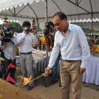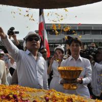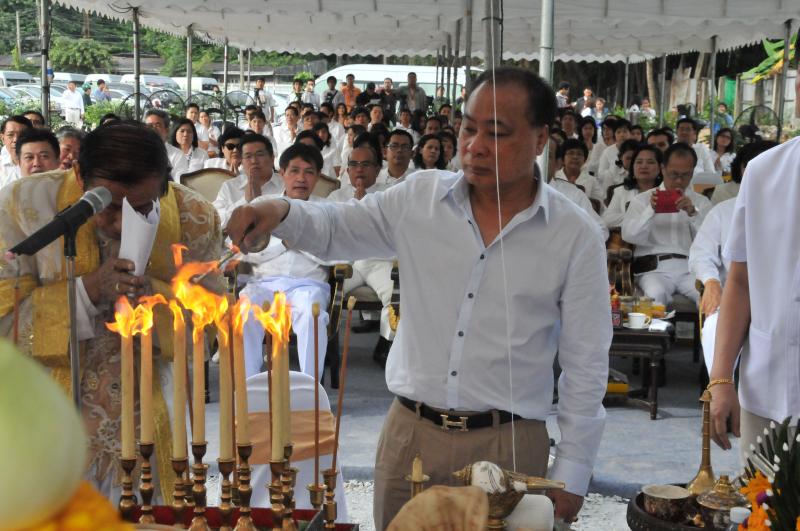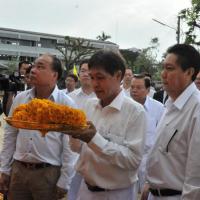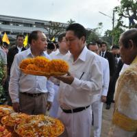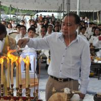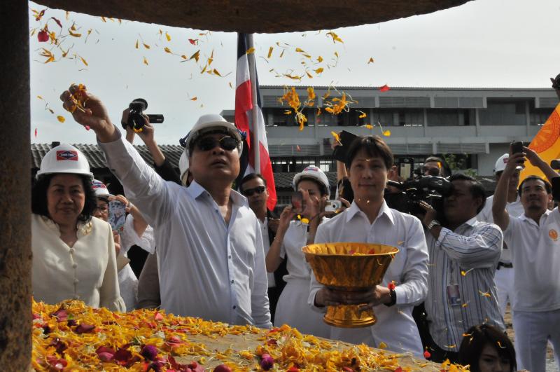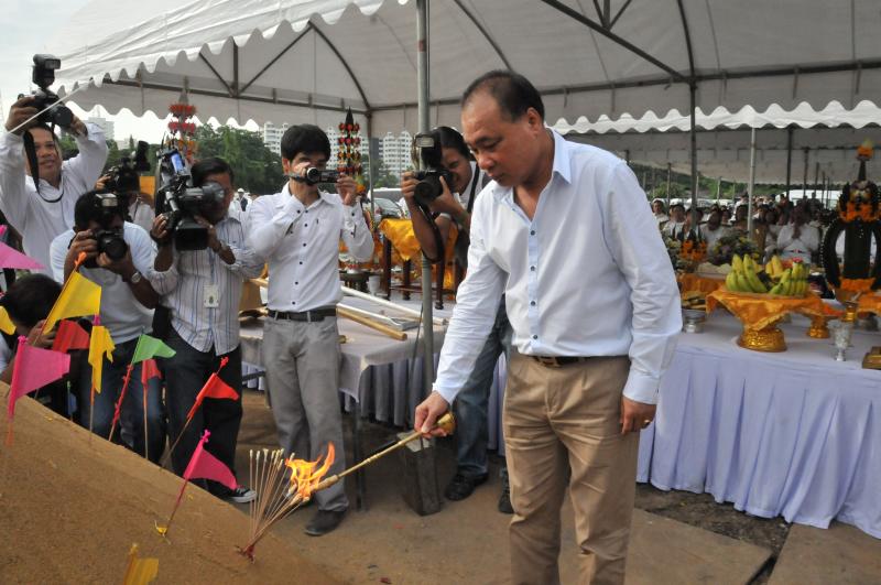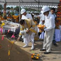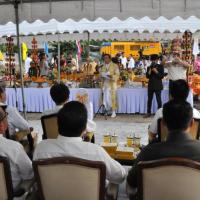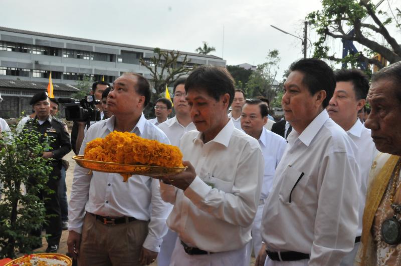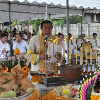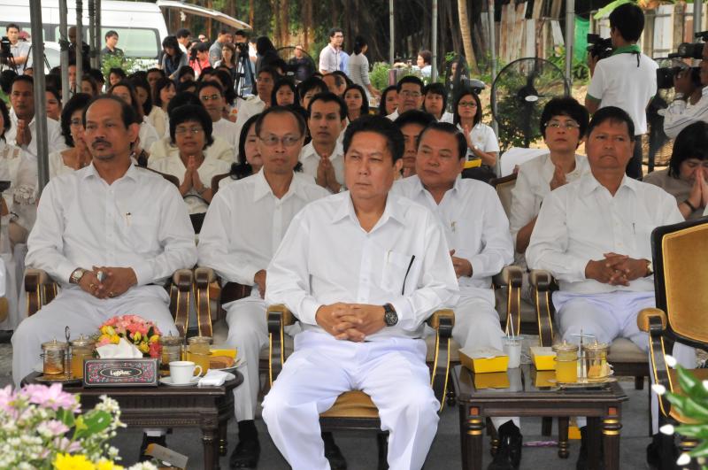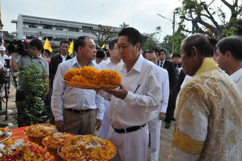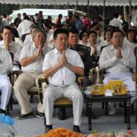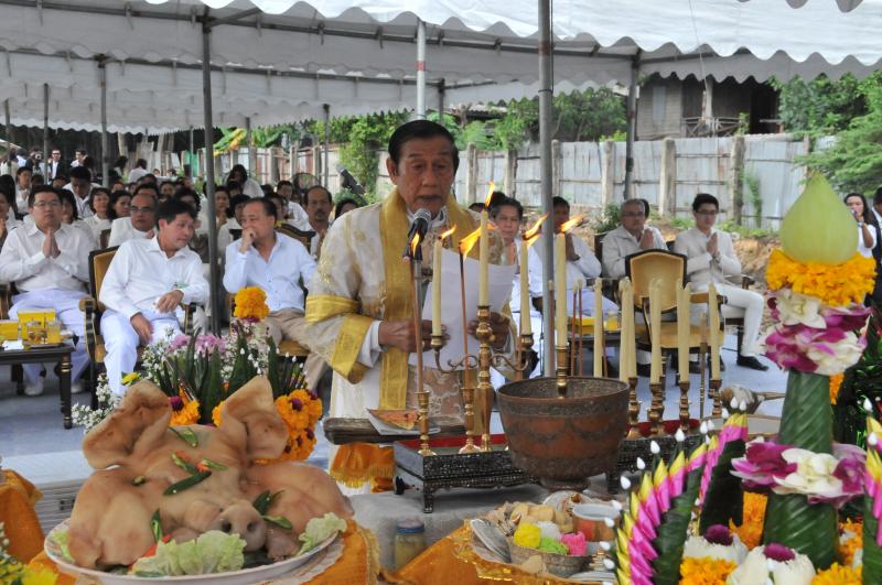 นายสมศักดิ์ เกียรติสุรนนท์ ประธานรัฐสภาและประธานสภาผู้แทนราษฎร เป็นประธานในพิธีบวงสรวง บูชาฤกษ์ เบิกพระแม่ธรณีฯ
