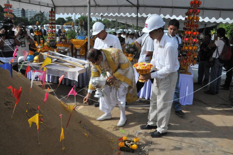 วันอังคารที่ ๒๗ กรกฎาคม ๒๕๕๖ เวลา  ๐๘.๓๐ นาฬิกา  ณ แปลงหมายเลขทะเบียนที่ กท. ๓๐๔๙ ถนนทหาร (เกียกกาย) แขวงถนนนครไชยศรี  เขตดุสิต  กรุงเทพฯ นายสมศักดิ์ เกียรติสุรนนท์ ประธานรัฐสภาและประธานสภาผู้แทนราษฎร เป็นประธานในพิธีบวงสรวง บูชาฤกษ์ เบิกพระแม่ธรณี เจริญพระพุทธชัยมงคล ขอพระพร ขอพรชัยมงคล ประกอบพิธีตอกเสาเข็มสร้างอาคารรัฐสภาแห่งใหม่ ทั้งนี้ภายหลังการประกอบพิธี ประธานรัฐสภา ได้ให้สัมภาษณ์ผู้สื่อข่าว โดยแสดงความมั่นใจว่าการก่อสร้างอาคารรัฐสภาจะแล้วเสร็จตามกำหนดสัญญา คือ ๙๐๐ วัน หรือประมาณ ปี ๒๕๕๙
