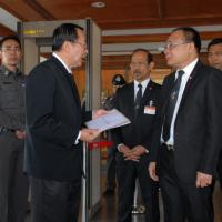 วันจันทร์ที่ ๔ พฤศจิกายน ๒๕๕๖ เวลา ๑๐.๒๐ น. ณ หน้าห้องประชุมรัฐสภา ชั้น ๒ อาคารรัฐสภา ๑ นายสมศักดิ์ เกียรติสุรนนท์ ประธานรัฐสภาและประธาน    สภาผู้แทนราษฎรรับมอบจดหมายเปิดผนึกจากนายเหวง โตจิราการ สมาชิกสภาผู้แทนราษฎรแบบบัญชีรายชื่อ พรรคเพื่อไทย เพื่อขอให้ประธานรัฐสภาดำเนินการตรวจสอบข้อเท็จจริง ในกรณีสหรัฐอเมริกาใช้สถานทูตอเมริกันประจำประเทศไทยในการดักฟังโทรศัพท์ ตามที่ปรากฏเป็นข่าวในหนังสือพิมพ์ The Sydney Morning Herald  ฉบับประจำวันที่ ๒๙ ตุลาคม ๒๕๕๖