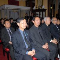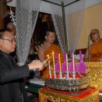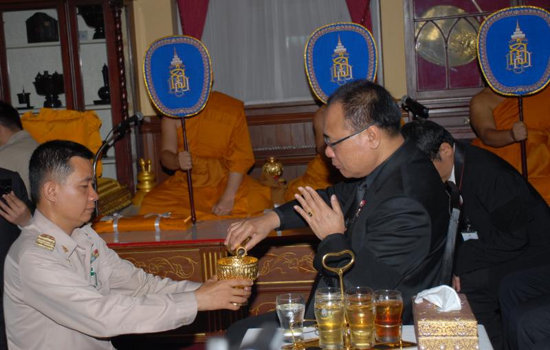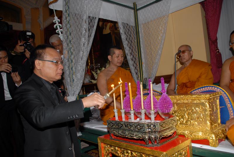 วันพฤหัสบดีที่ ๑๔ พฤศจิกายน ๒๕๕๖ เวลา ๑๙.๐๐ นาฬิกา ณ พระตำหนักเพ็ชร วัดบวรนิเวศวิหาร นายสมศักดิ์ เกียรติสุรนนท์ ประธานรัฐสภา เป็นประธานในพิธีสวดพระอภิธรรมงานบำเพ็ญกุศลพระศพ สมเด็จพระญาณสังวร สมเด็จพระสังฆราช สกลมหาสังฆปรินายก ซึ่งรัฐสภาเป็นเจ้าภาพ