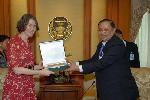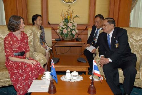| วันศุกร์ที่ ๑๑ กรกฎาคม ๒๕๕๑ เวลา ๑๐.๐๐ นาฬิกา ณ ห้องรับรอง ๒ ชั้น ๒ อาคารรัฐสภา ๑ นายชัย ชิดชอบ ประธานรัฐสภา และประธานสภาผู้แทนราษฎร ให้การรับรอง Ms. Bronte Moules อัครราชทูตออสเตรเลียประจำประเทศไทย เข้าเยี่ยมคารวะในโอกาสมอบหนังสือทาบทามการเยือนไทยของคณะผู้แทนรัฐสภาเครือรัฐออสเตรเลียนำโดยประธานวุฒิสภาเครือรัฐ ออสเตรเลีย |