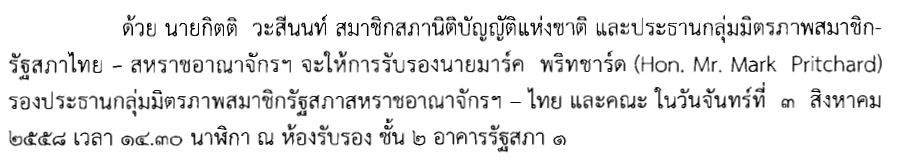 การให้การรับรองรองประธานกลุ่มมิตรภาพสมาชิกรัฐสภาสหราชอาณาจักรฯ-ไทย และคณะ