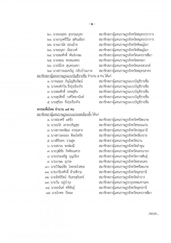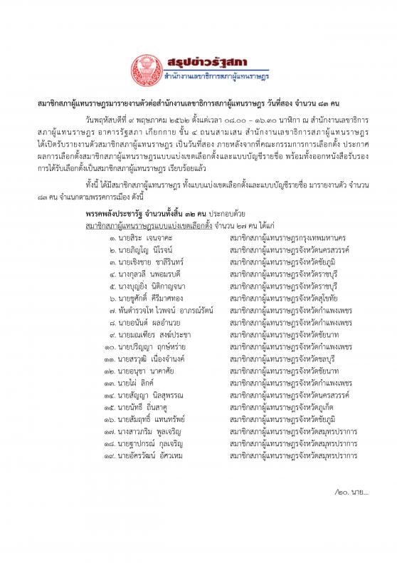 ได้มี ส.ส. มารายงานตัวต่อสำนักงานเลขาธิการสภาผู้แทนราษฎร