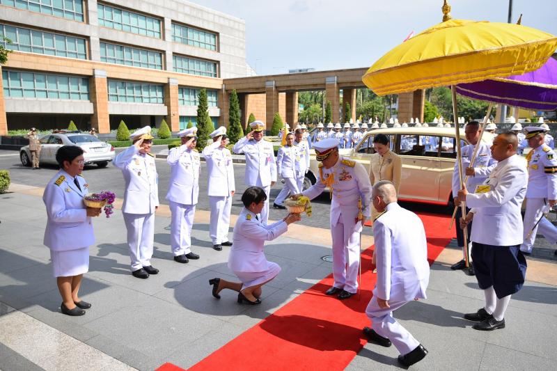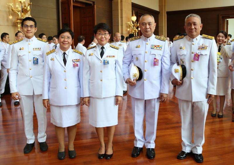 รับเสด็จ โดยมี องคมนตรีคณะรัฐมนตรีสมาชิกสภาผู้แทนราษฎร สมาชิกวุฒิสภา