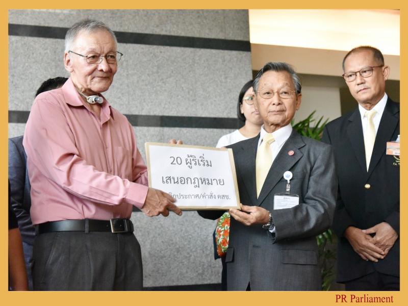 วันพฤหัสบดีที่ ๒๐ มิถุายน ๒๕๖๒ เวลา ๑๓.๒๐ นาฬิกาณ บริเวณชั้น ๑ หอประชุมใหญ่ อาคาร ๙ บริษัท ทีโอที จำกัด (มหาชน) นายชวน หลีกภัย ประธานสภาผู้แทนราษฎร รับหนังสือจากนายจอน อึ้งภากรณ์ผู้อำนวยการโครงการอินเตอร์เน็ตเพื่อประชาชน (iLaw) และคณะ เพื่อเสนอร่าง พ.ร.บ. ยกเลิกประกาศคณะรักษาความสงบแห่งชาติ (คสช.)และคำสั่งของ คสช. ที่ขัดต่อหลักสิทธิมนุษยชนและประชาธิปไตย