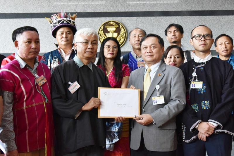 สมาชิกสภาผู้แทนราษฎรพรรคอนาคตใหม่ รับยื่นหนังสือจากเลขาธิการสภาชนเผ่าพื้นเมืองแห่งประเทศไทย