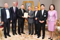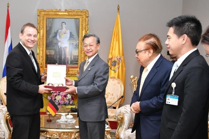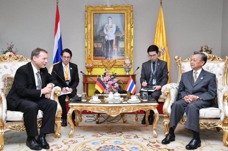 | วันพฤหัสบดีที่ ๑ สิงหาคม ๒๕๖๒ เวลา ๑๐.๑๕ นาฬิกา ณ ห้องรับรอง ชั้น ๔ อาคารรัฐสภา เกียกกาย นายชวน หลีกภัย ประธานสภาผู้แทนราษฎร ให้การรับรอง นายเก - ออร์ค ชมิท (Mr.Georg Schmidt) เอกอัครราชทูตสหพันธ์สาธารณรัฐเยอรมนีประจำประเทศไทย ในโอกาสที่เข้าเยี่ยมคารวะเพื่อกระชับความสัมพันธ์ระหว่างสถาบันนิติบัญญัติของทั้งสองประเทศ พร้อมนำหนังสือแสดงความยินดีจากประธานสภาผู้แทนราษฎรสหพันธ์สาธารณรัฐเยอรมนี มอบแด่นายชวน หลีกภัย ในโอกาสที่ได้รับพระบรมราชโองการโปรดเกล้าฯ แต่งตั้งให้ดำรงตำแหน่ง ประธานสภาผู้แทนราษฎร ทั้งนี้ ประธานสภาผู้แทนราษฎรได้กล่าวต้อนรับ และกล่าวขอบคุณ พร้อมทั้งกล่าวถึงความคืบหน้าของการก่อสร้างอาคารรัฐสภา เกียกกาย ด้านเอกอัครราชทูต ได้กล่าวขอบคุณประธานสภาผู้แทนราษฎร ที่ให้การต้อนรับและรู้สึกเป็นเกียรติอย่างยิ่งที่ได้เข้า เยี่ยมคารวะ เพื่อกระชับความสัมพันธ์ของทั้งสองประเทศให้มีความแน่นแฟ้นมากยิ่งขึ้น